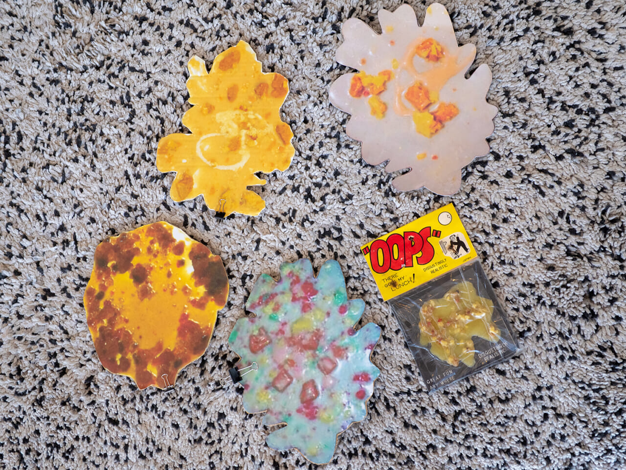 今回、話の流れによっては「少々、不穏当なモノの名称」が誌面に躍るおそれがございます。お食事や森林浴、アフタヌーンティなどをお楽しみ中のみなさまにおかれましては、くれぐれもご注意いただければと思います。で、はい、まずは上の写真。うわっと思いませんでした? 雑誌かなんかの取材のとき、この状態にしてたんですよ。たまたま。そしたらカメラマンさんが「ああっ!」とかって大きな声を出したんです。「加賀美さん! ヤバいっすよ! コーヒーこぼれちゃってます!」いい人でした。俺も俺で「ええっ! やべっ!」とか自分で自分に騙されちゃって(笑)。心底くだらないグッズなんだけど、買っちゃうんですよね、こういうの。どうしても。ジャンル的には「ジョークグッズ」というそうです。ビックリさせる系のやつですね。他にもケチャップがこぼれてるやつとか、「ガム食べる?」って引っ張ったら「バチーン!」とか。あるいは人間身体の反射的メカニズムによって食道から口腔を通し体外に排出された胃の内容物のフィギュアとかね。平たく言えばゲ◯のおもちゃですけどね。下の写真とかは「まんだらけ」で1000円くらいだったかな。いちばん好きなのが、もう言わなくてもわかるかもしれないけど、ウ◯コのおもちゃ。目がないんです。昔はけっこう売ってましたよね、そこらへんで。でも、いまはいろいろ余裕のない時代なのか、なかなか見なくなりました。昔サンフランシスコに専門店があったんです。イカした店でね。店内ぜんぶ、こんなノリ。床から天井から壁から棚から、ところ構わず。いつの間にか潰れてたけど、店ごと買いたかったくらいです。そんなんだから、よく「加賀美さん、『Ge』とか『U』とか大好きですもんね」なんて言われるんだけど、大っキライですよ! 当たり前じゃないですか。トラウマがあるんです。まず「U」については、小学生のとき、おしりを強く拭きすぎて、ちり紙が‥‥わかりますよね? しばらく凹みました。「Ge」については、ぼく、人生で一度だけ学芸会の主役を務めたことがあるんです。幼稚園のとき、王子さまの役で。王冠をかぶって、マントをつけて、太もものあたりがポワンとふくらんだズボンを穿いて。母ちゃんがつくってくれたんだけど、それがうれしくてね。終演後、イエ~なんつって体育館をはしゃぎ回ってたら、誰かが撒き散らした「Ge」を踏んづけてスッテンコロリン。あわれな王子さまになっちゃって。それ以来、憎んでいます。でも、それのおもちゃは、つい買っちゃう。なんなら「かわいい♡」とさえ思ってる。何なんだろう、この心理。人間って複雑。