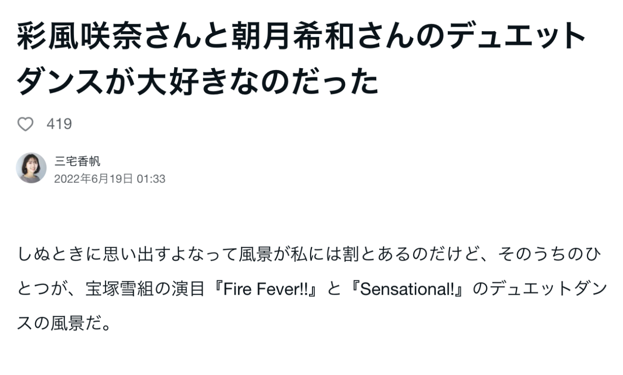 一番好きだった娘役の朝月希和さんが退団を発表して