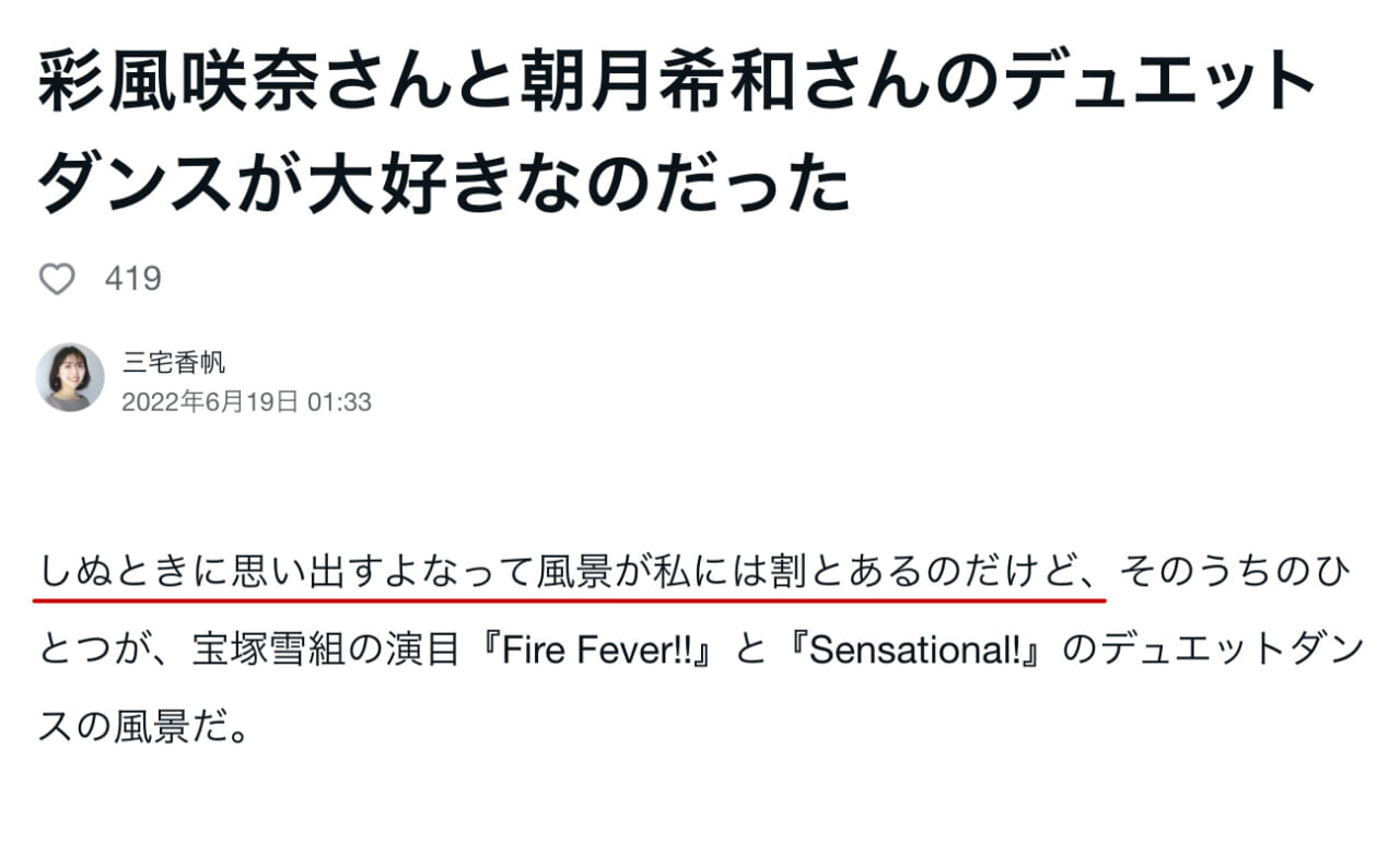 わたしは朝月希和さんと男役の彩風咲奈さんの