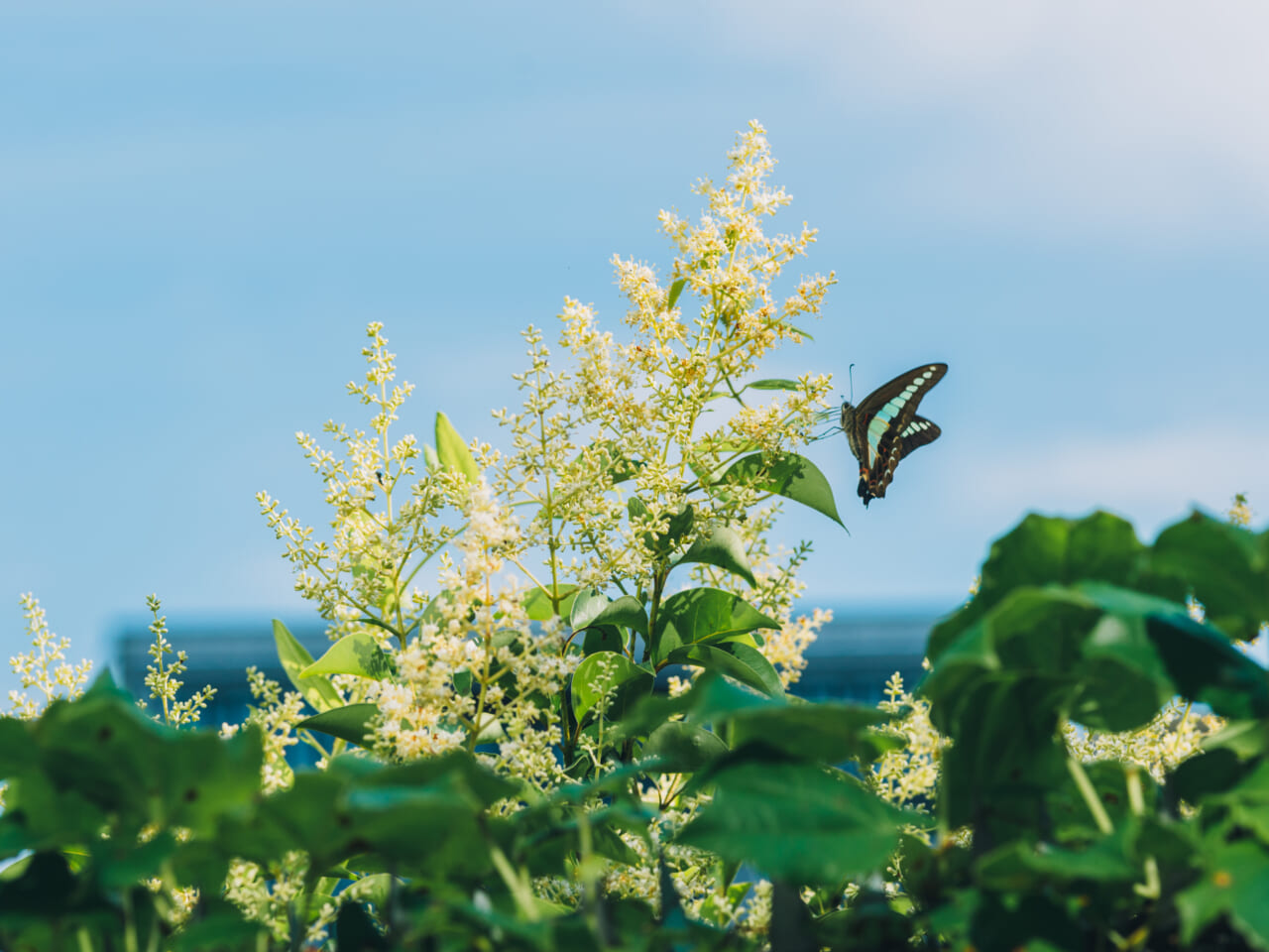 新緑を少し前に迎えた木々や植物が生い茂っている。