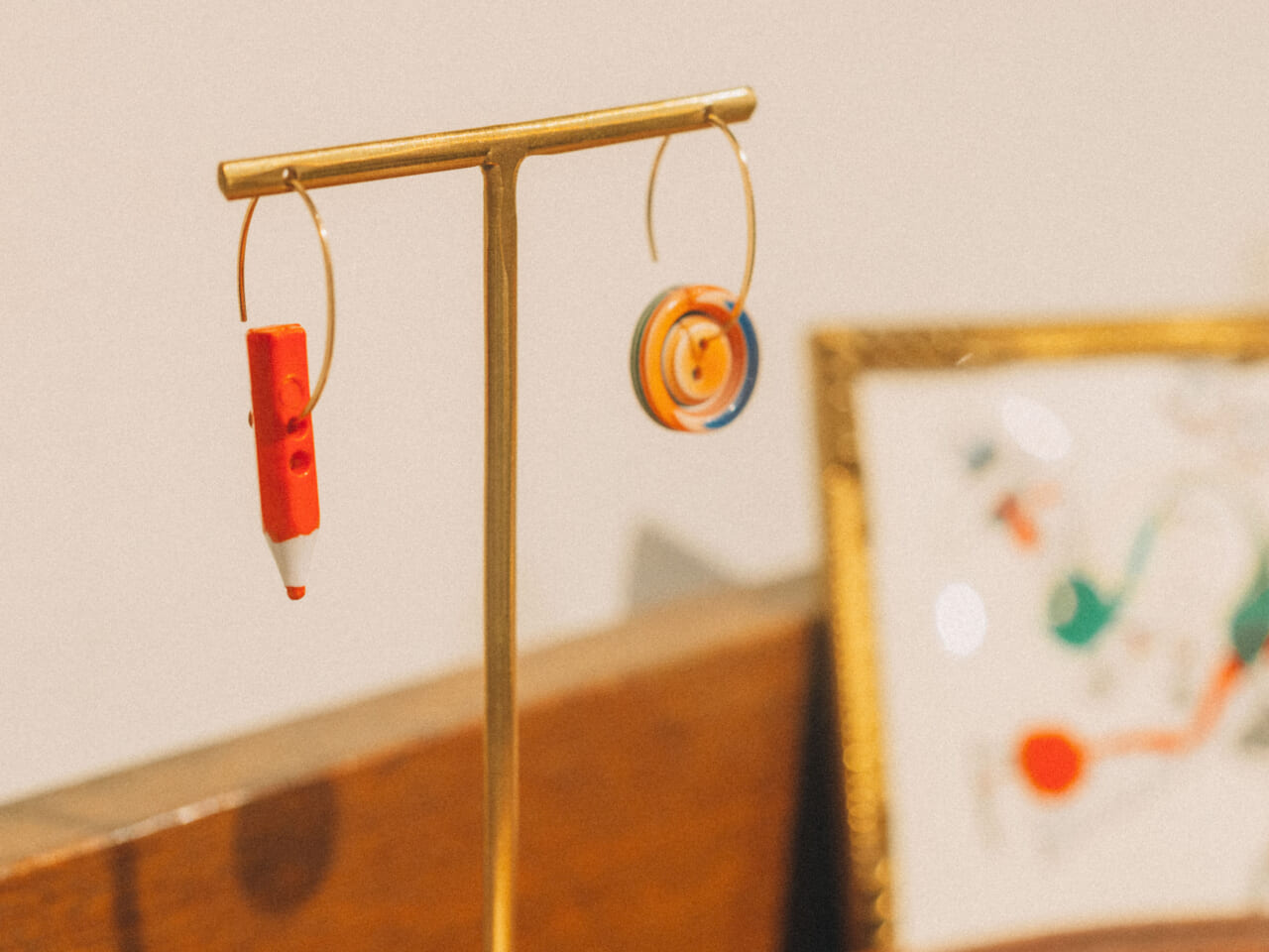 店内には赤や黒のちいさな色鉛筆のボタンが