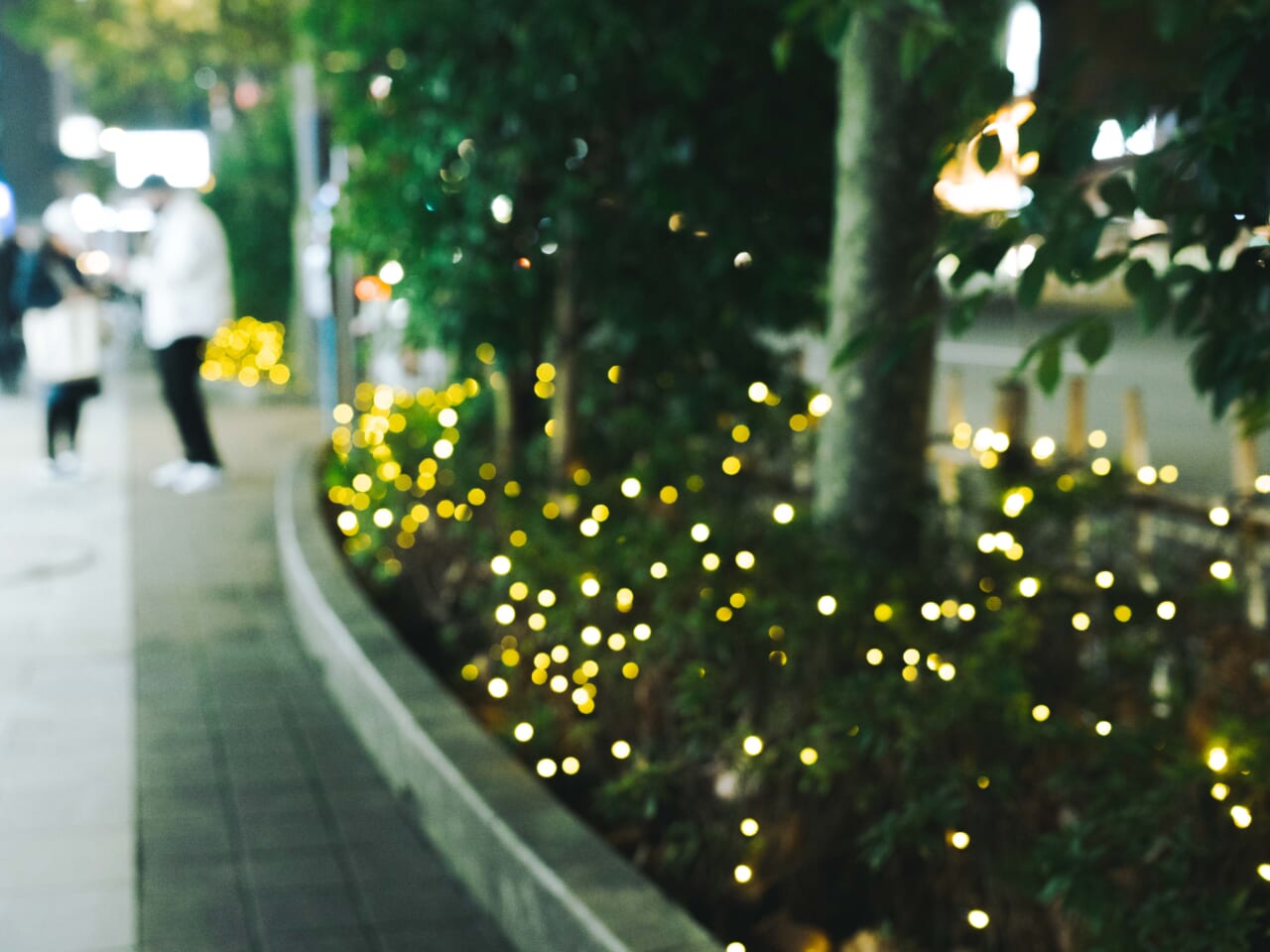 もっと背の低い植樹帯に明かりが取り付けられていて、