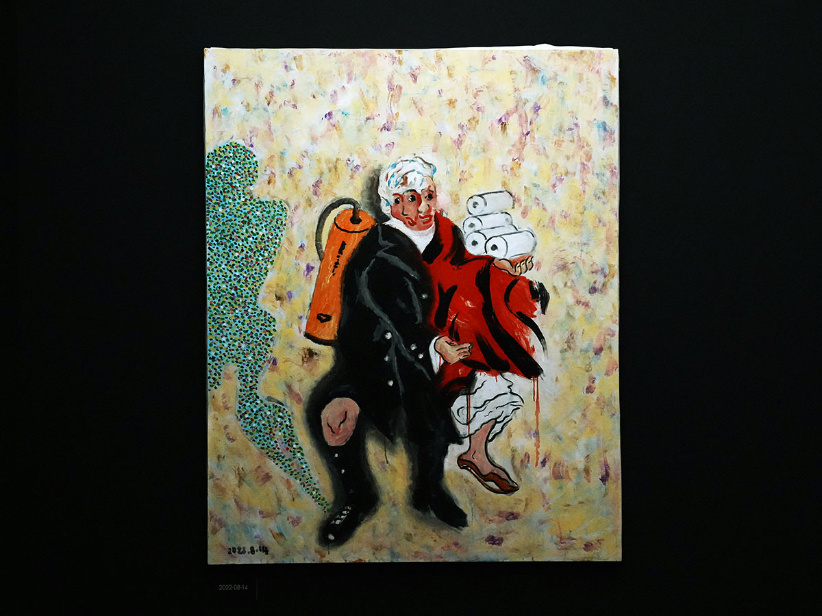 禅画にギンギンの紙が貼っつけてあったり、