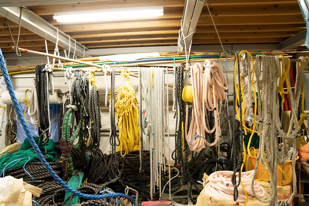 この倉庫でロープを作ったり補修したりしてます。