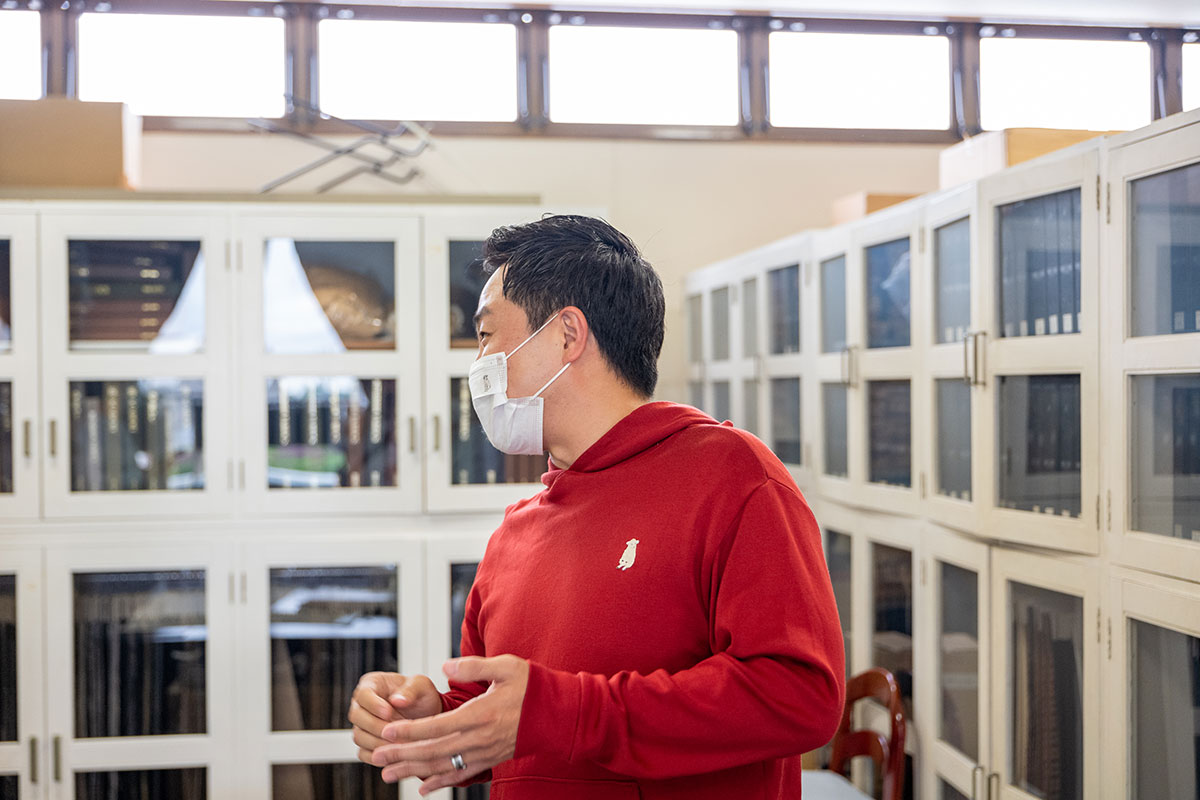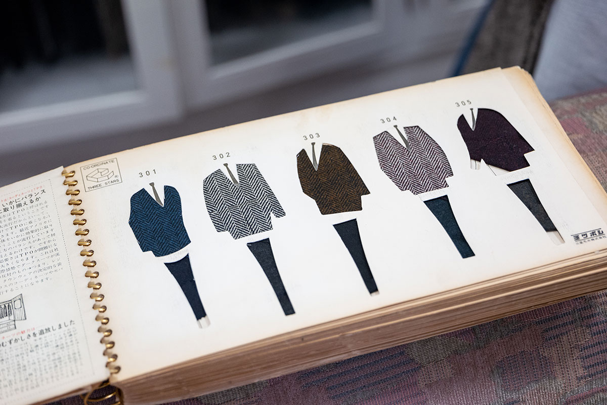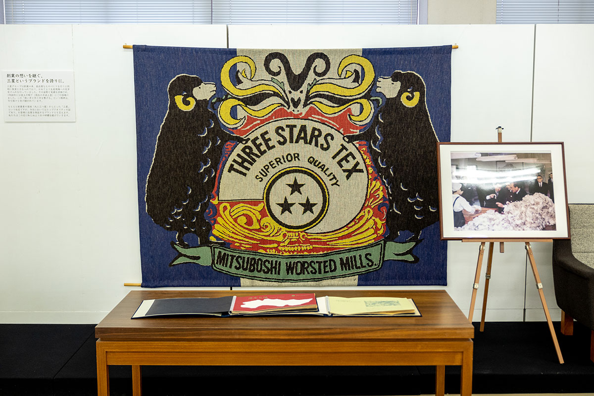 ▲三星毛織さんの生地のアーカイブを見せていただきました。100年前のものも!