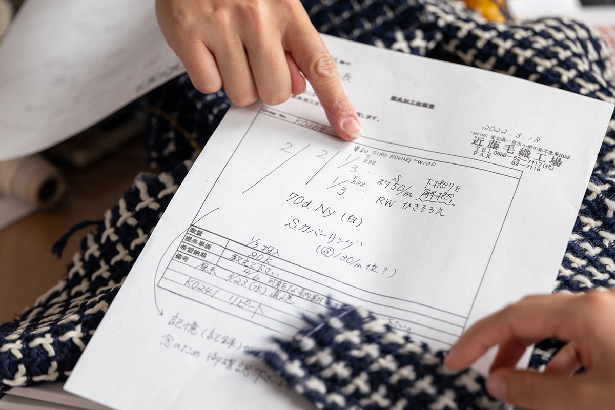 この生地だけで、紡績屋さん、撚糸屋さん、