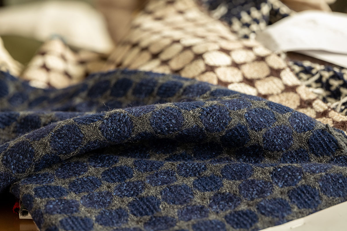 ▲その糸をつかって織られた「うねり」。まるで手紡ぎ手織りの布のような、あたたかみのある表情に。