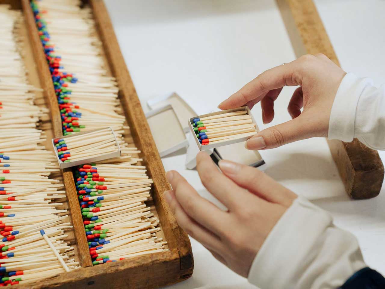 - ここがマッチ箱にマッチを詰める場所ですか。