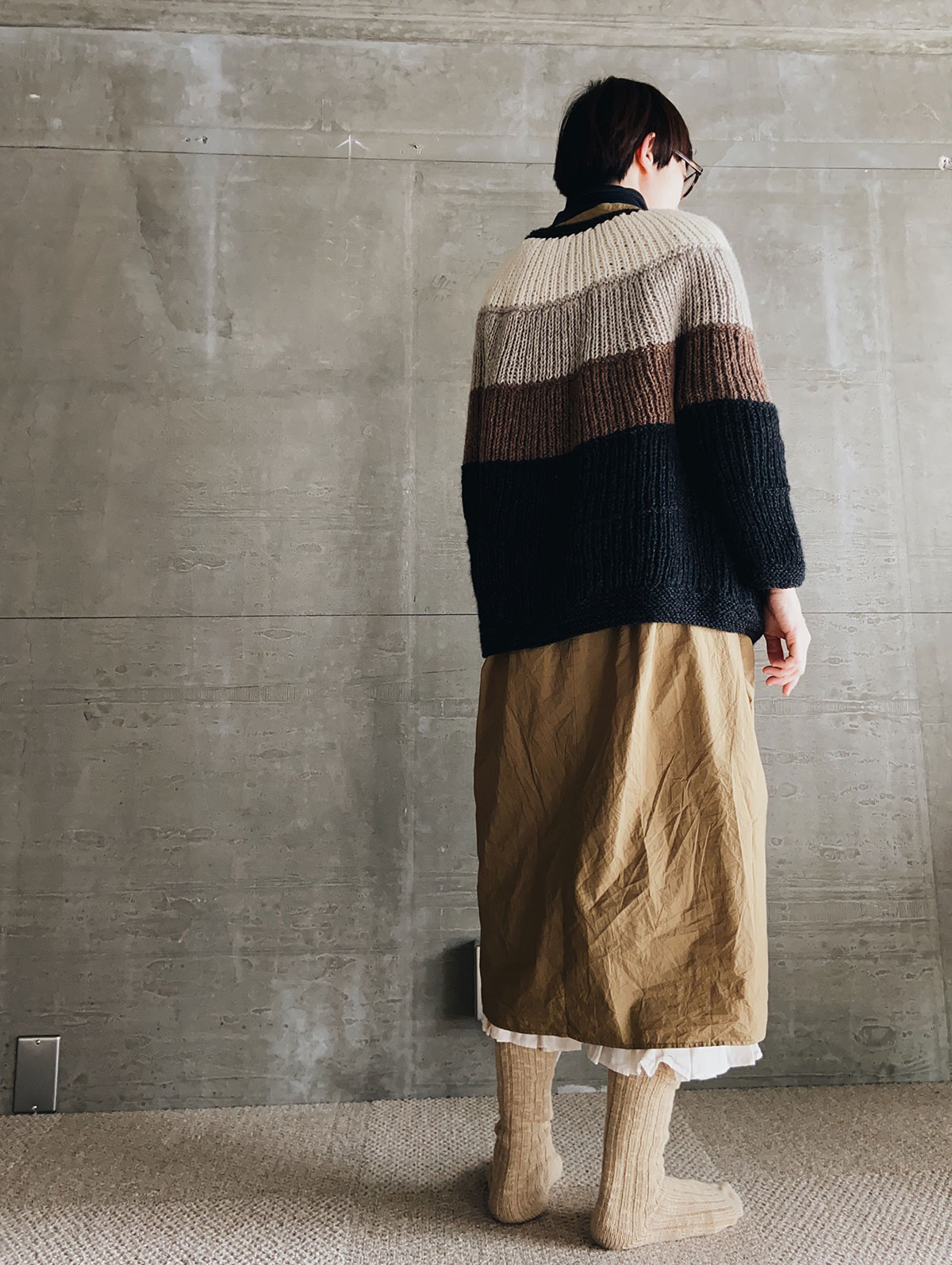 胸あたりまで編んだ時点でわたしには大きすぎることに気づき、
