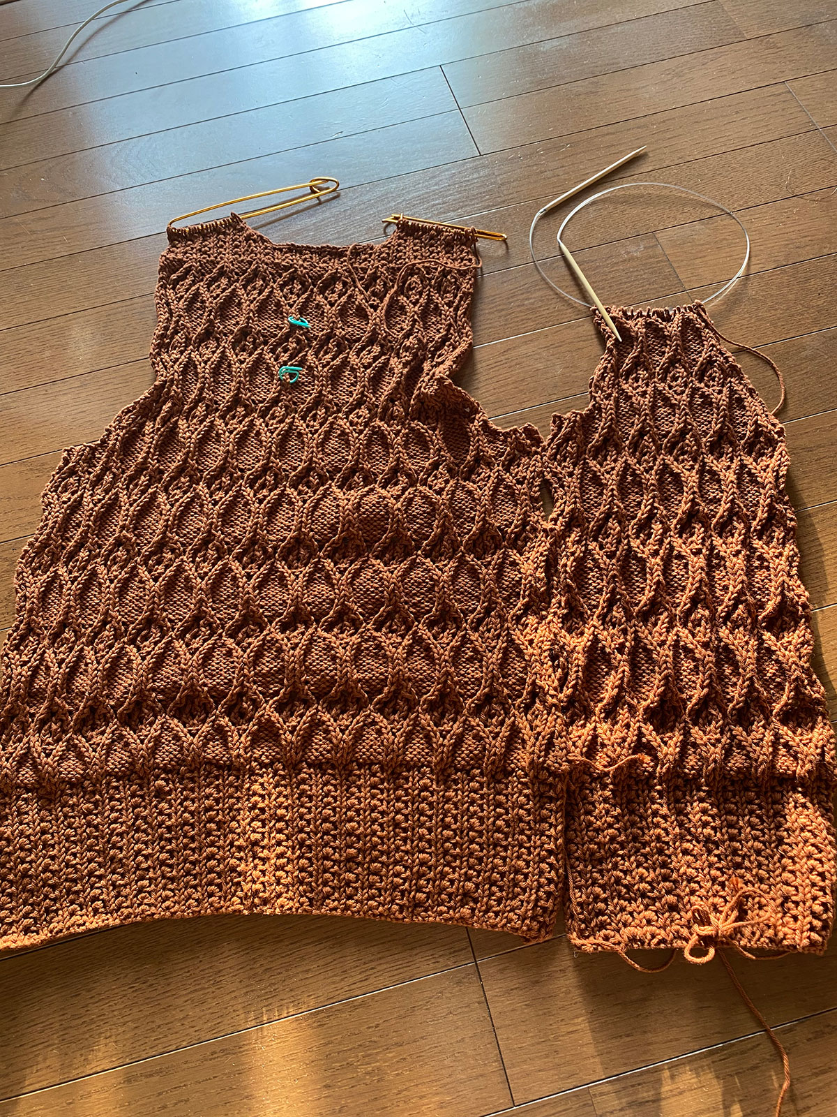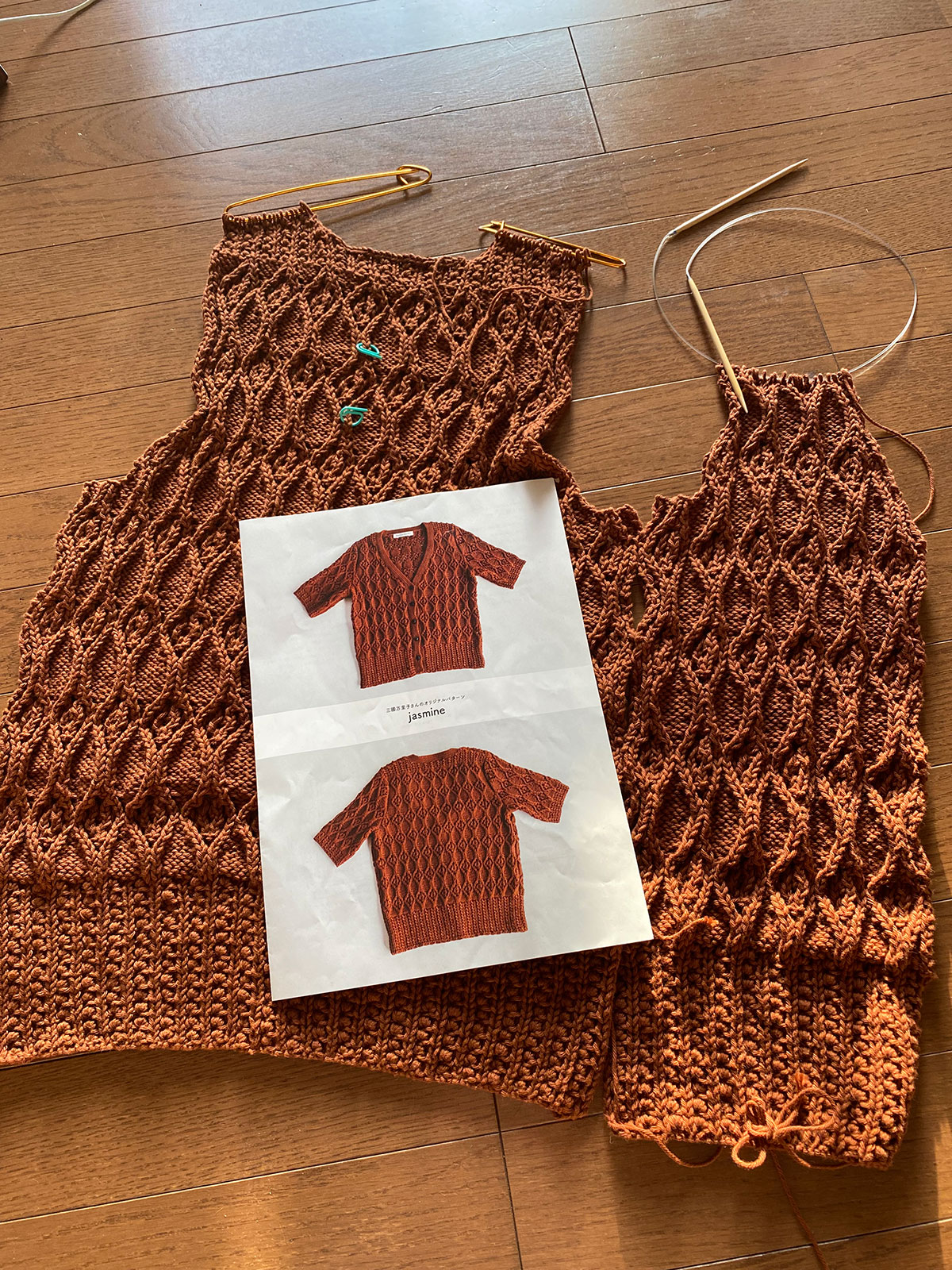 はやる気持ちをを抑えつつ、ひとつずつ編んでます。