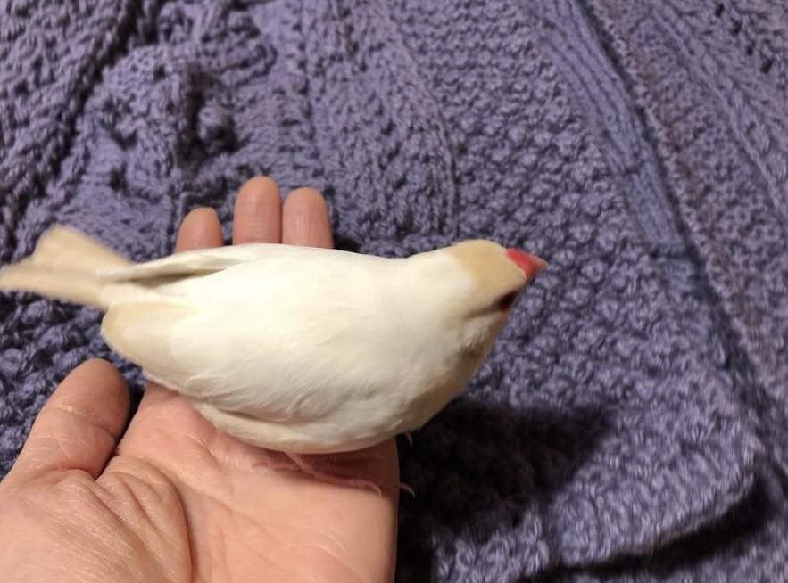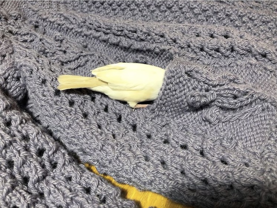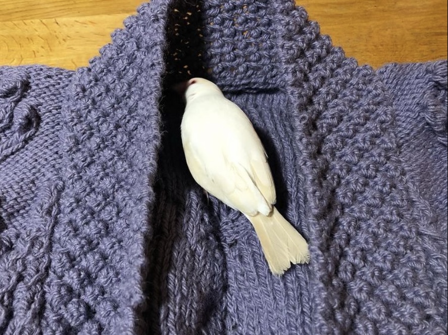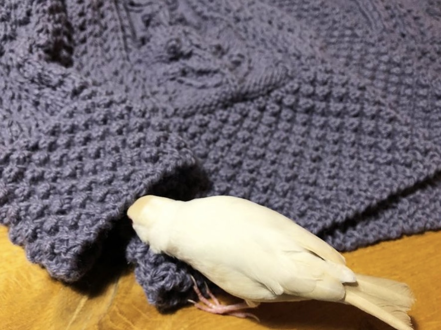 毛糸が大好きな文鳥のおコメちゃんに早速披露。