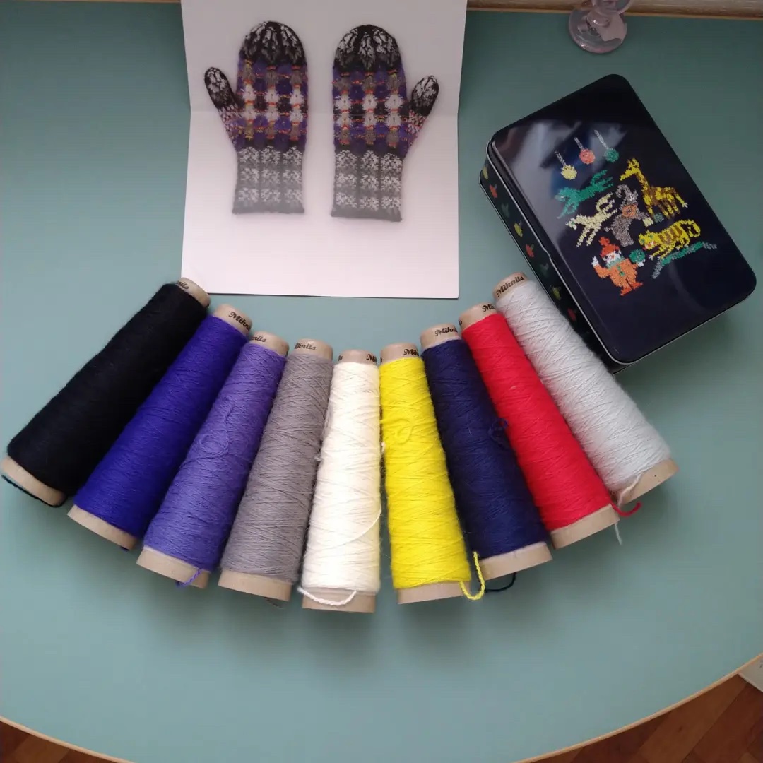 tokyoという名のミトンのキット。缶の中身はコーヒー。