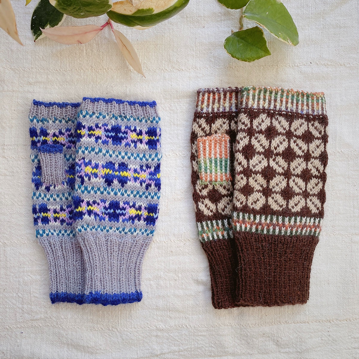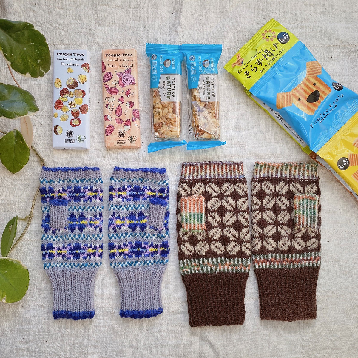 指出し手袋を編みました。コーヒー豆とすみれ。