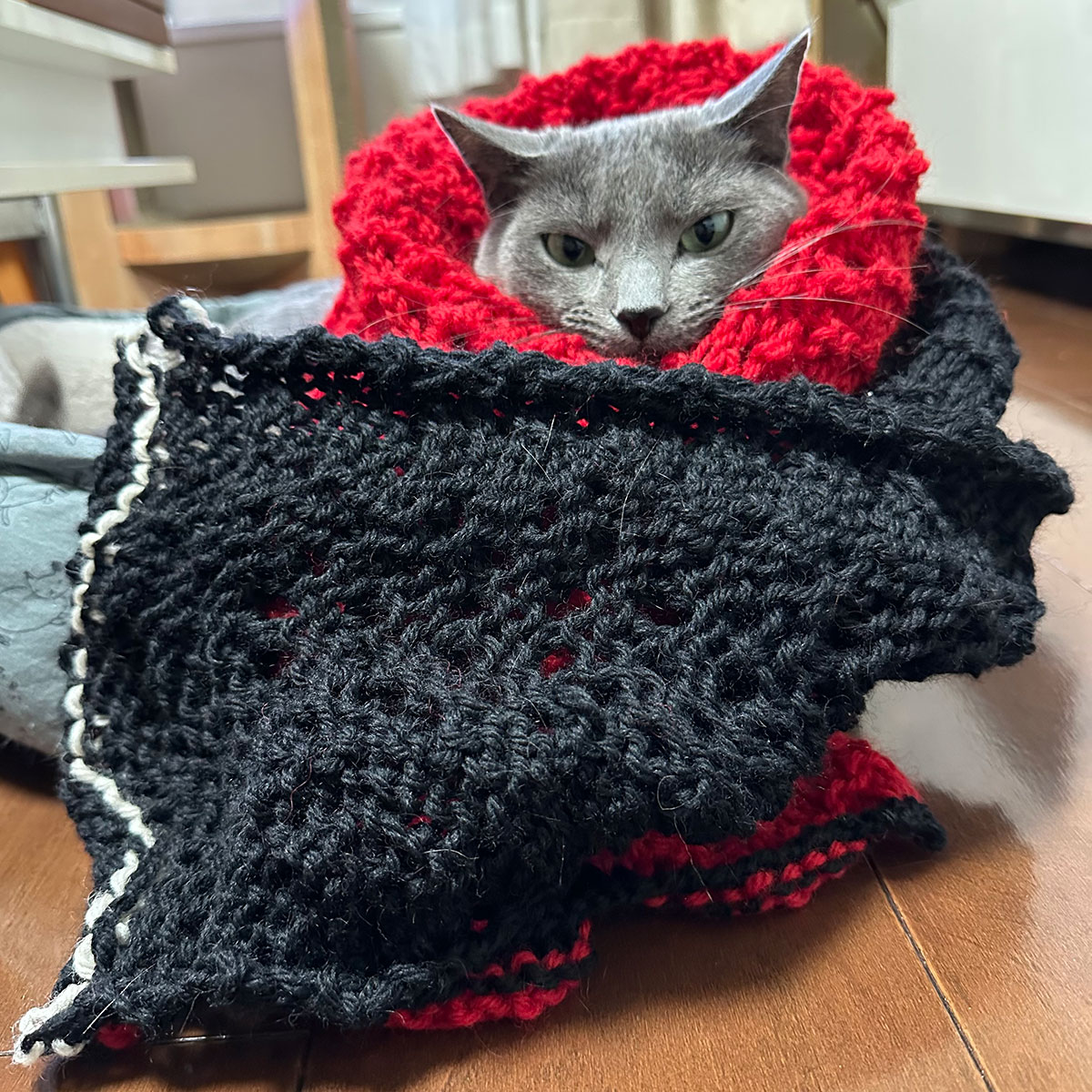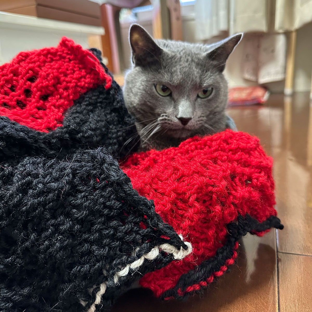 ずいぶん編んでから気づいたのでそのままにしちゃった。