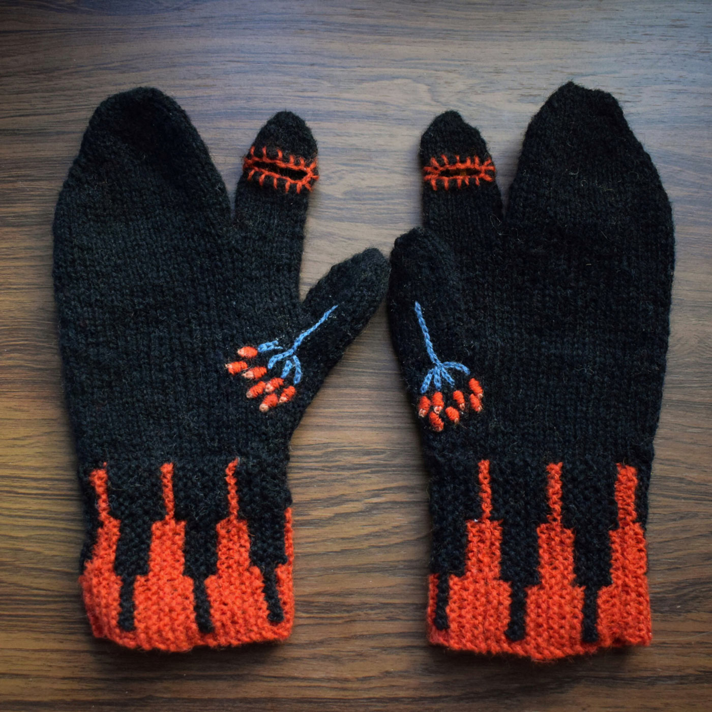アレンジで人差し指に穴を開けてブランケットステッチ。