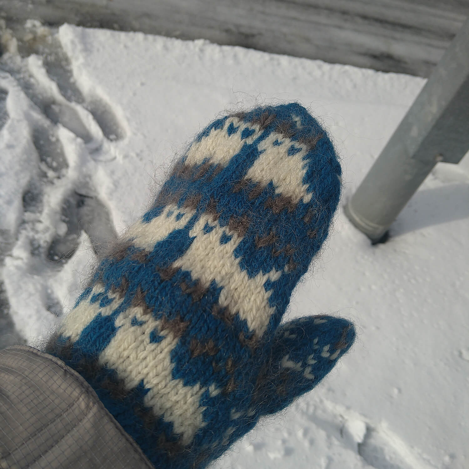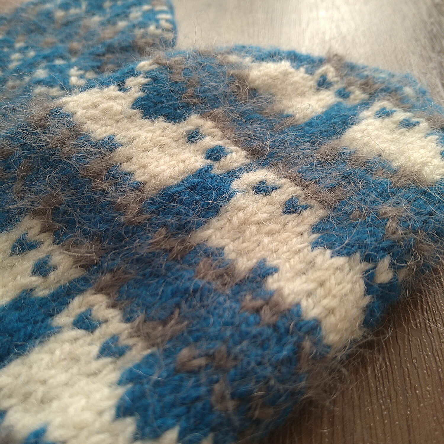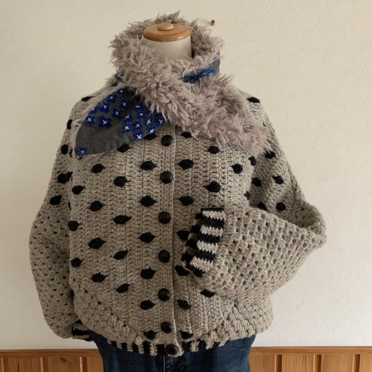 きつく編んでしまうので、ジャストサイズでした。次はアラン糸でセーターを編みます。