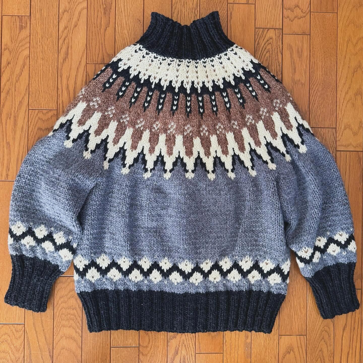 最後まで楽しく編むことができました。ネックから輪で始まる