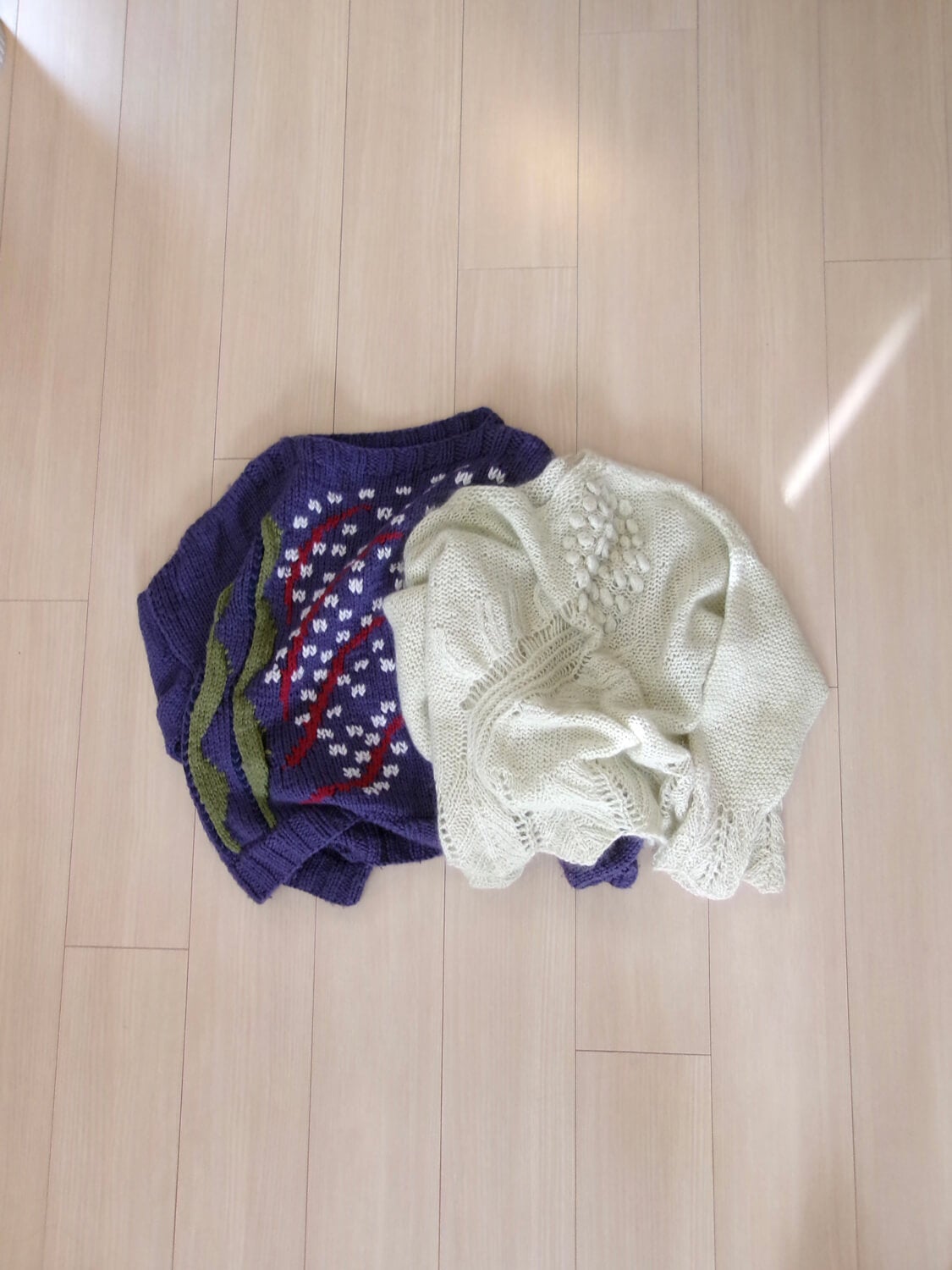 去年と今年で1枚ずつ編みました。