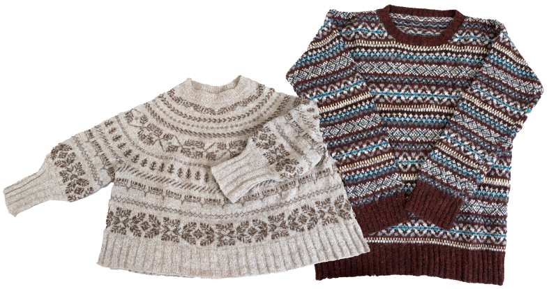 - 雰囲気のことなる2枚のニット。