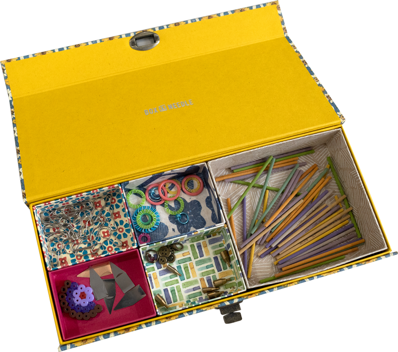 きれいに整理された編みもの道具たち。