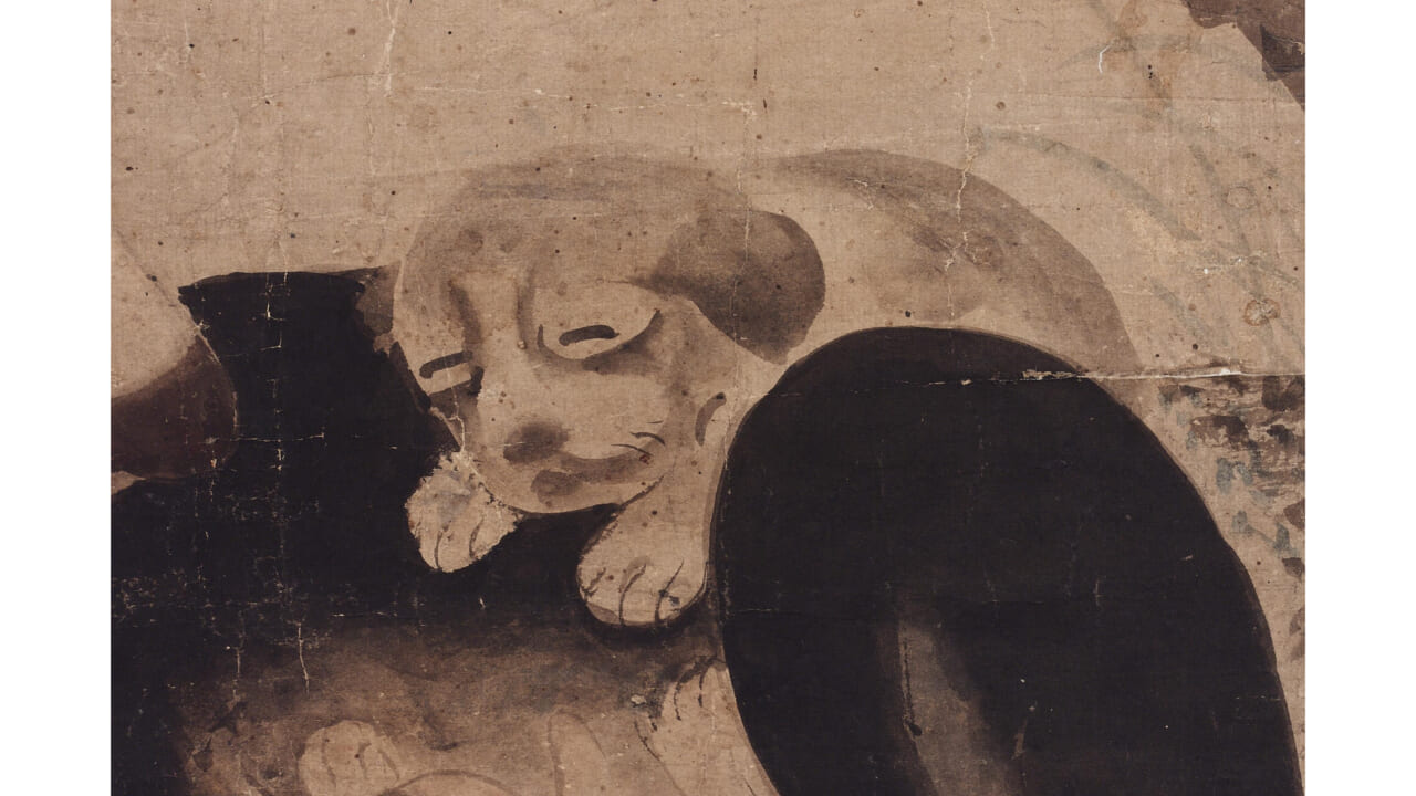中国で言うと、宋の時代に子犬の絵が描かれています。 - この絵は、それよりあとの時代、明のものです。
