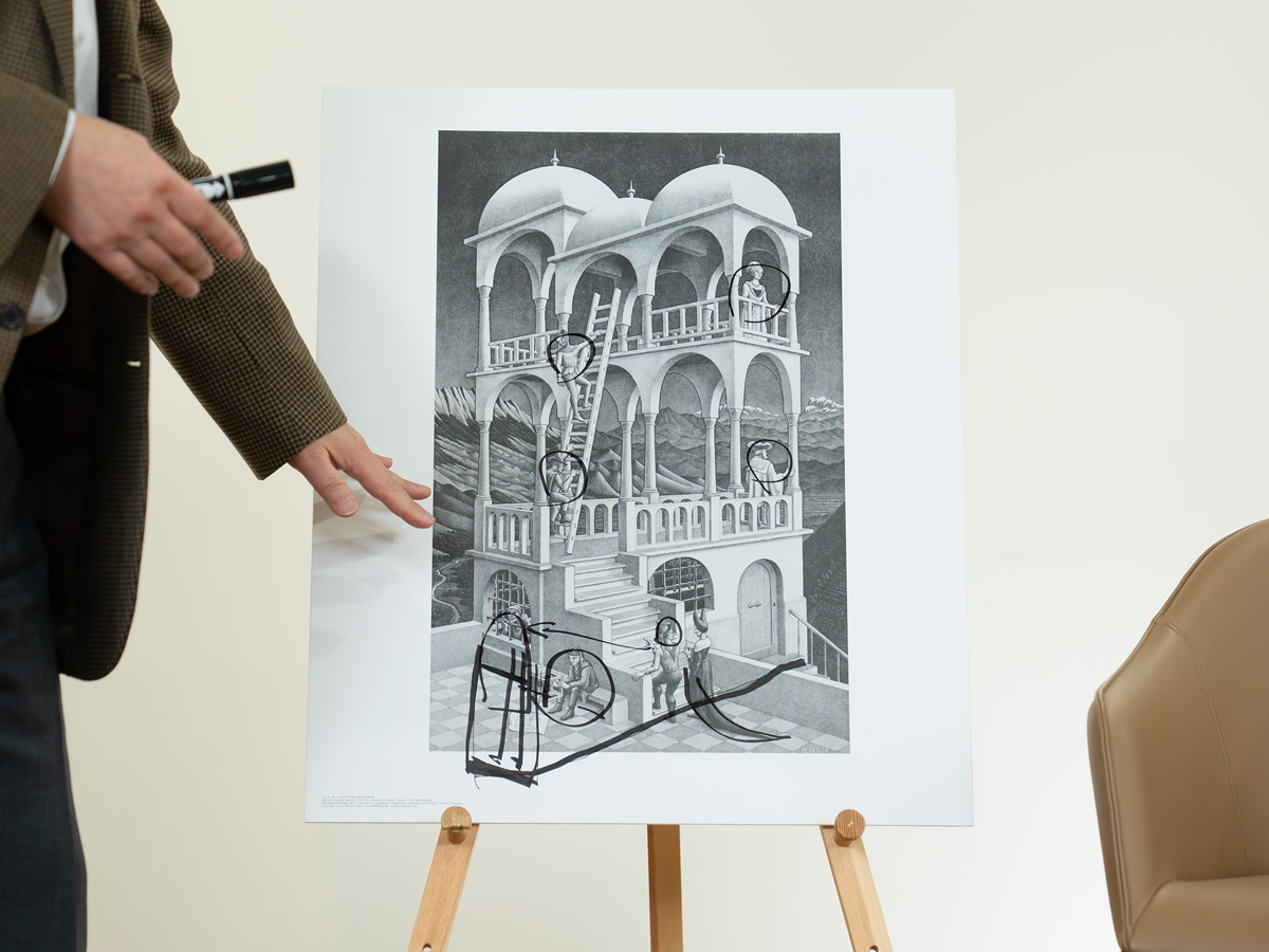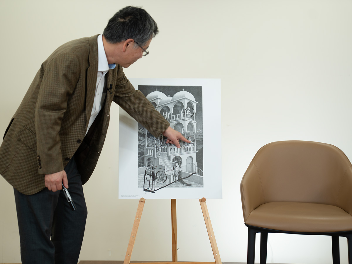 エッシャー作品の謎解きや魚の模様の話をしながら