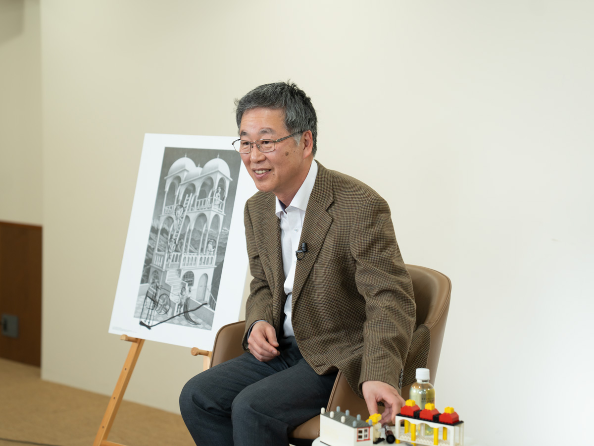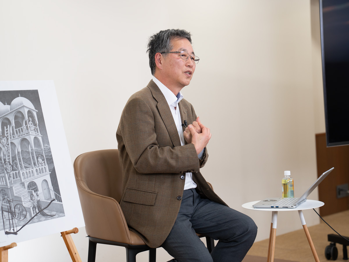 エッシャー作品の謎解きや魚の模様の話をしながら