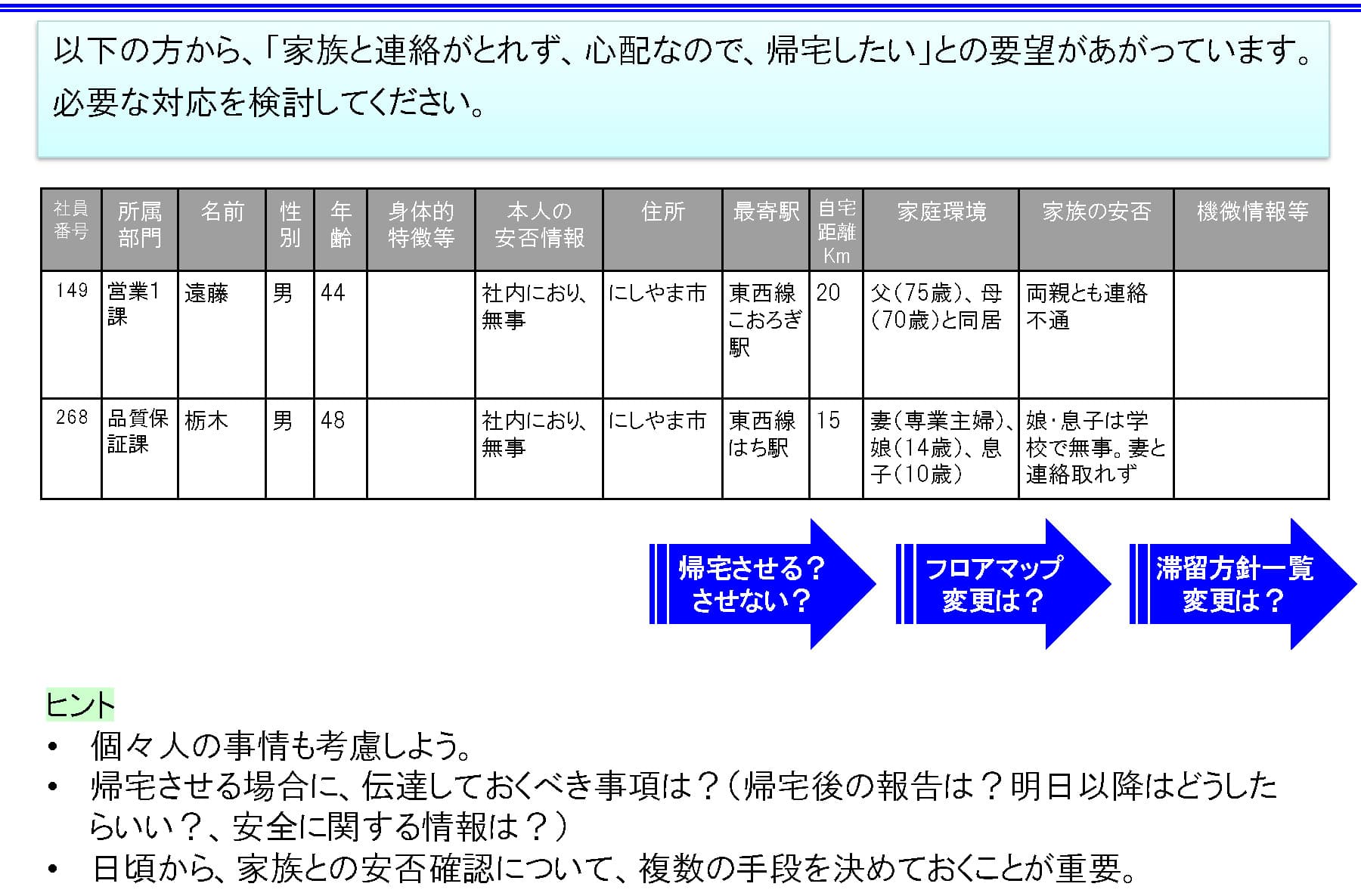 「家族と連絡がとれず、心配なので、帰宅したい」