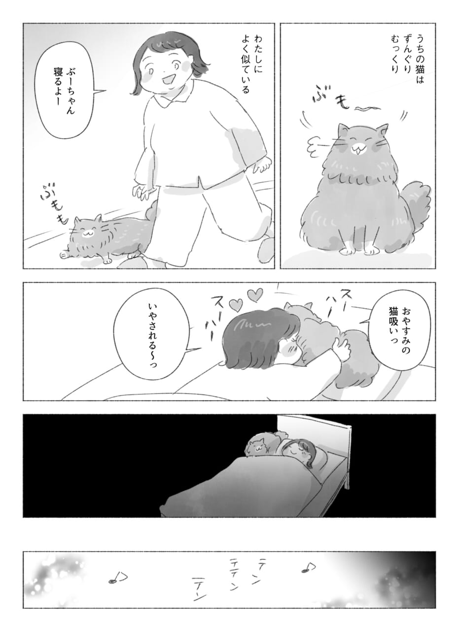 わたしは 愛猫の胸元に顔を埋めつつも、