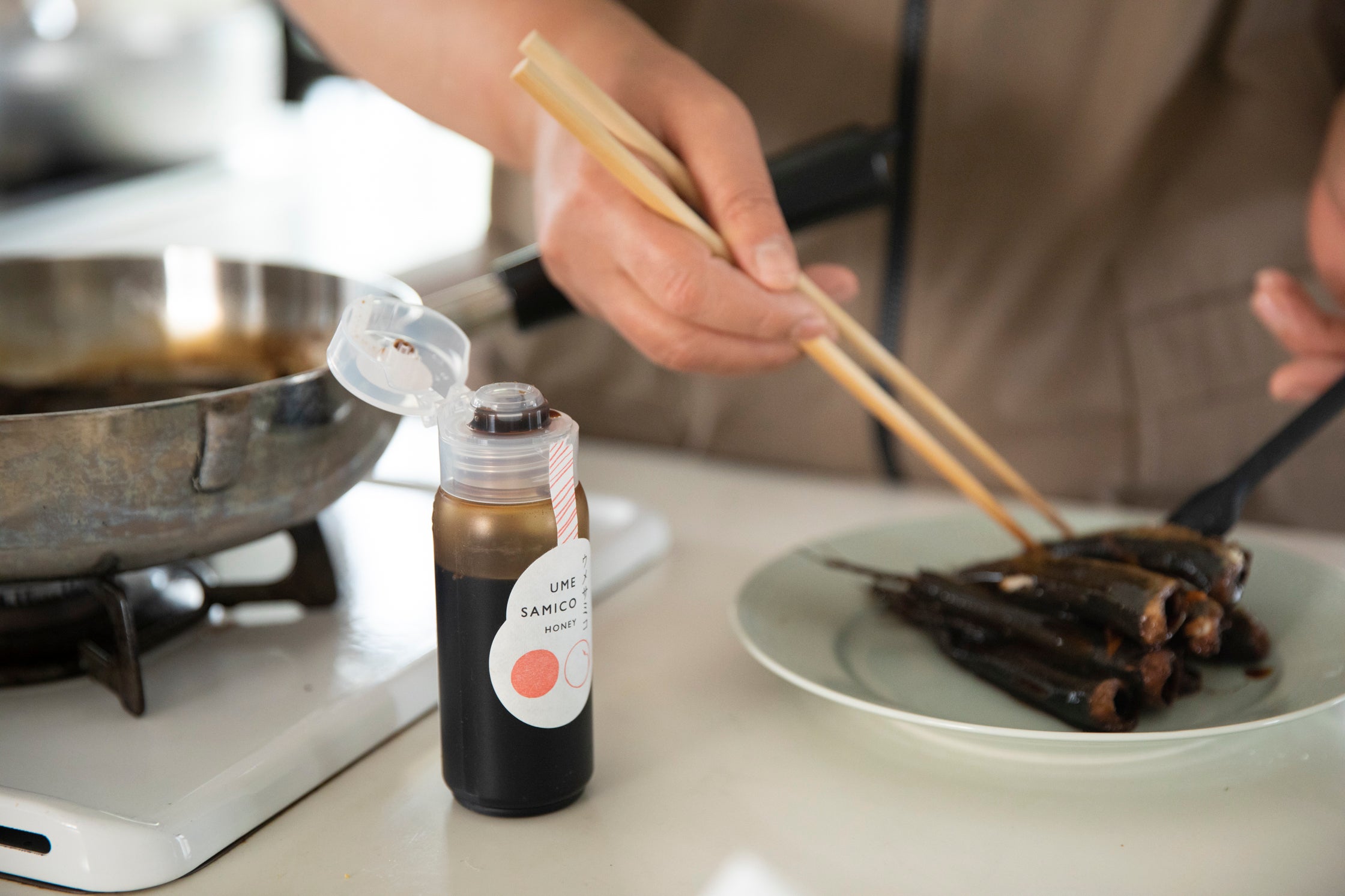 いわしと梅干しを一緒に煮る“いわしの梅煮”に似たお料理。梅干しの代わりにウメサミコを使うことでさっぱりとしたあじわいに、コクが増します。