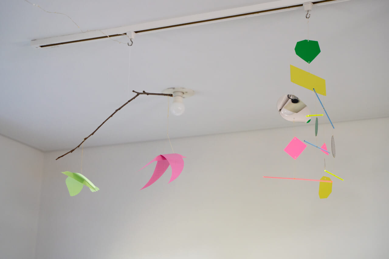 廊下をベッド移動するときに揺れる白鳥のモビールや、雲型の鏡、