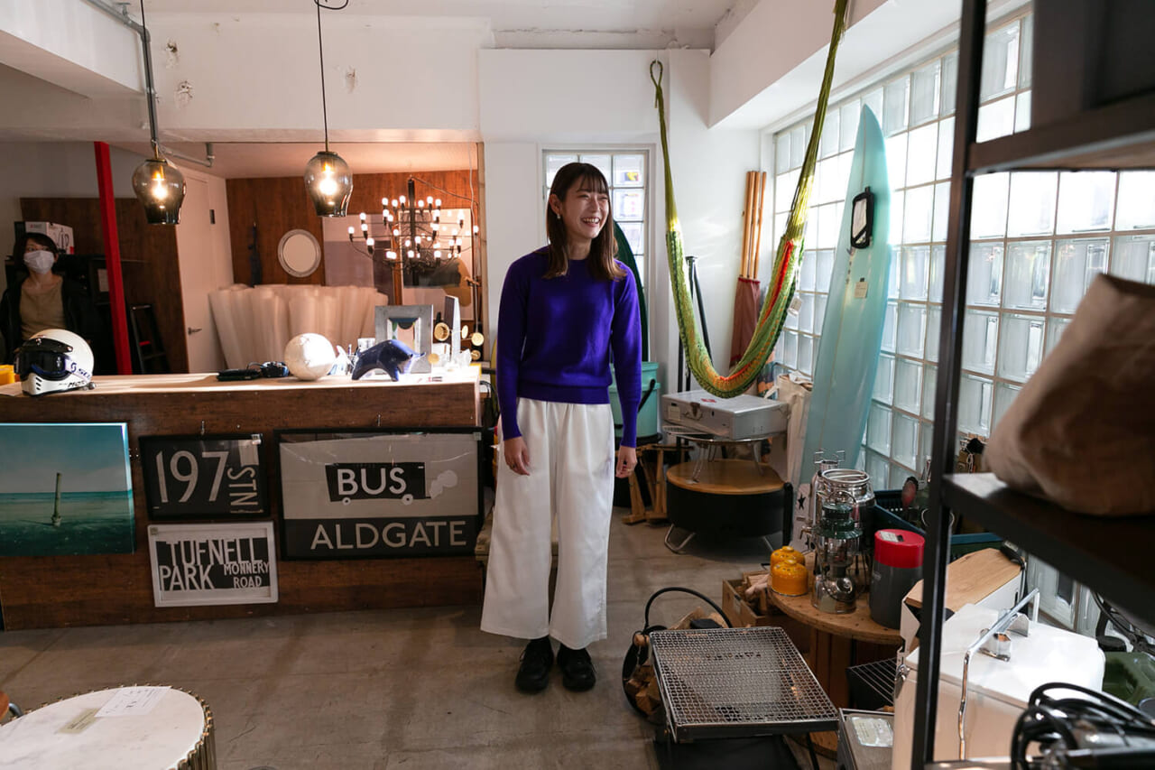 店内には、サーフボードから家具、オブジェや楽器まで