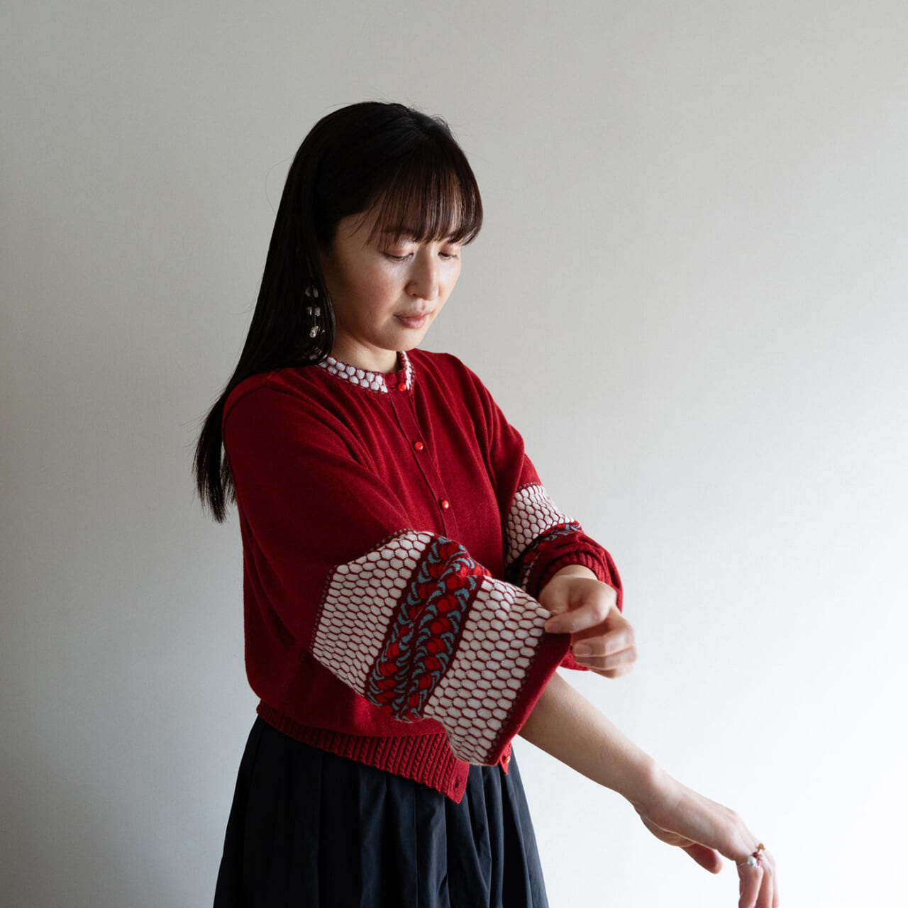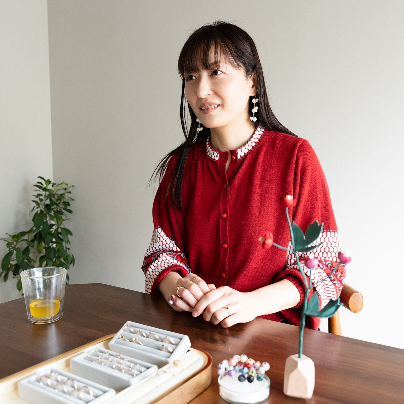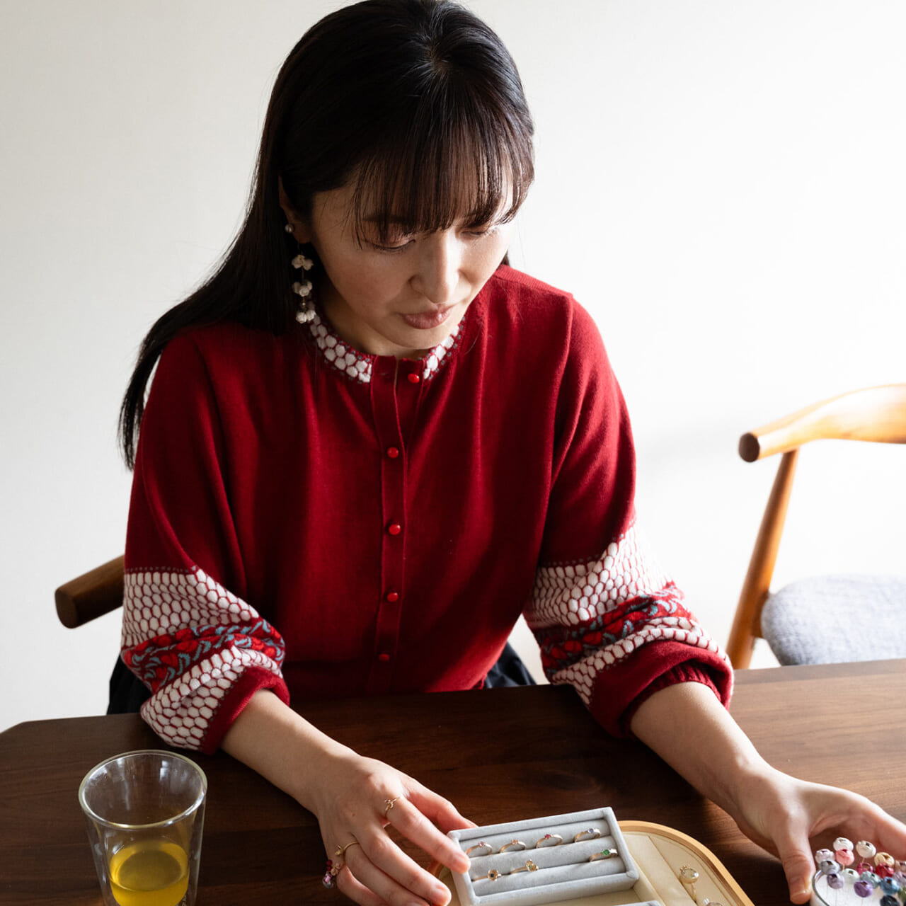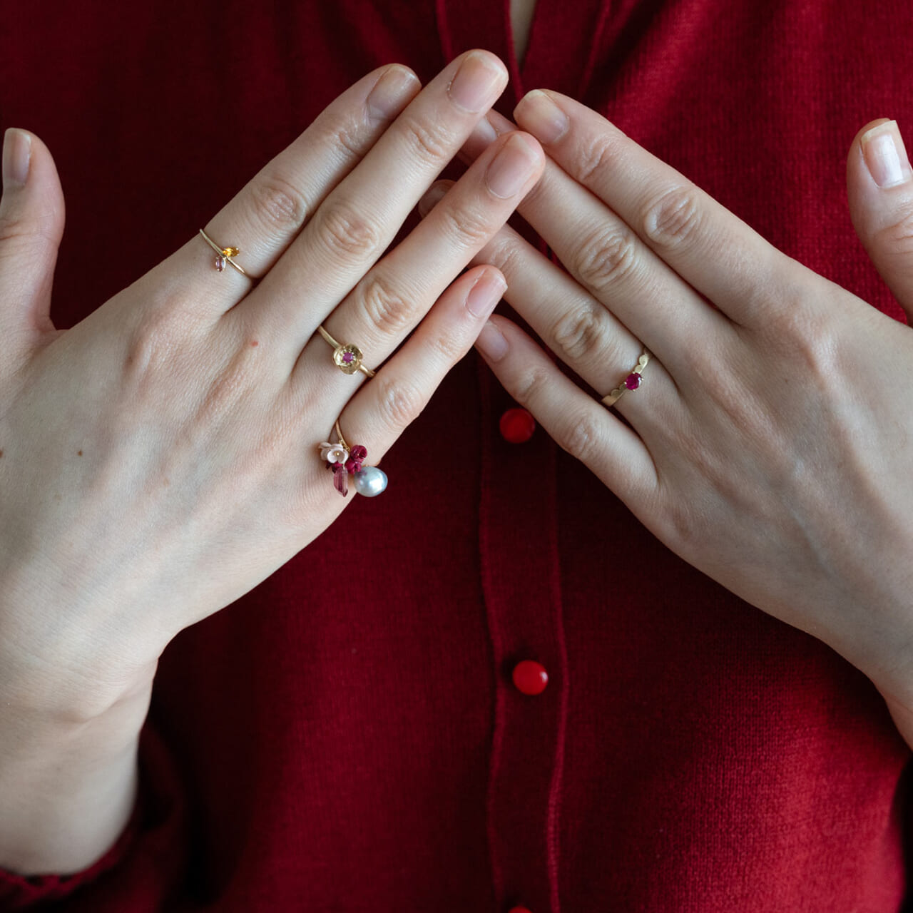 - 手元のリングは同系色の赤でまとめました。