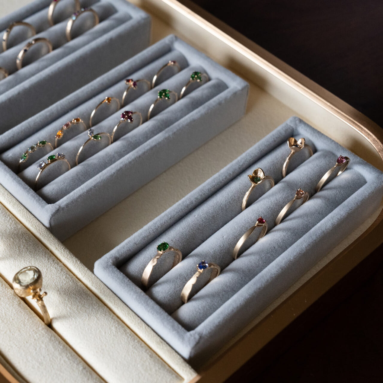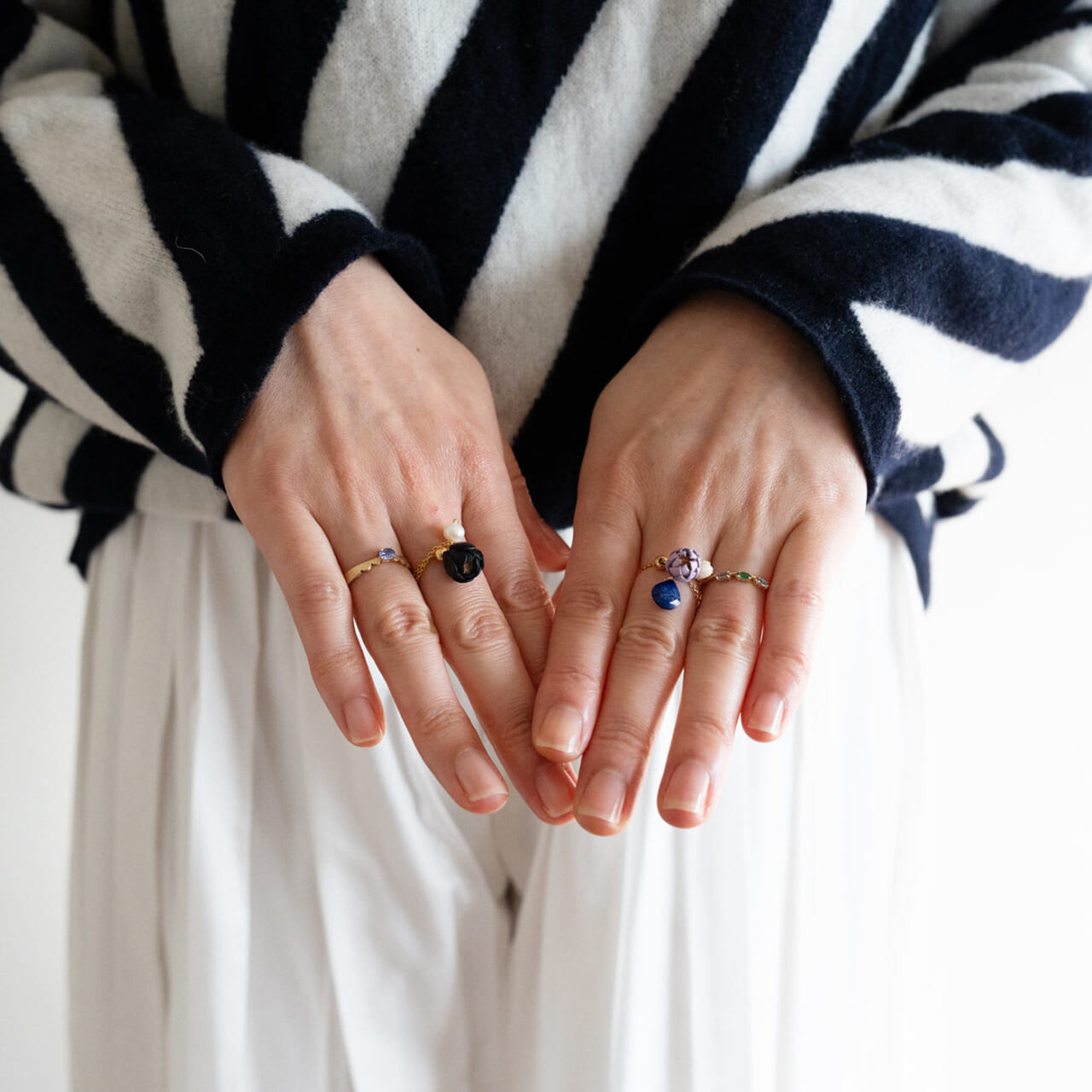 リングも、寒色系でまとめ、