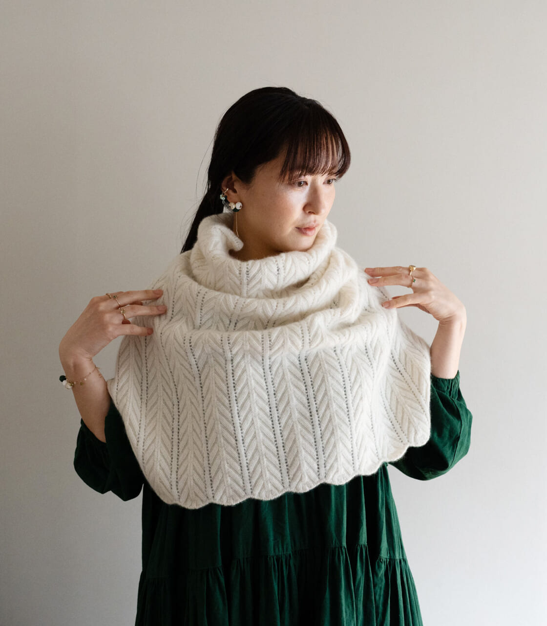 ケープっぽく着られたりスヌードにできたり、