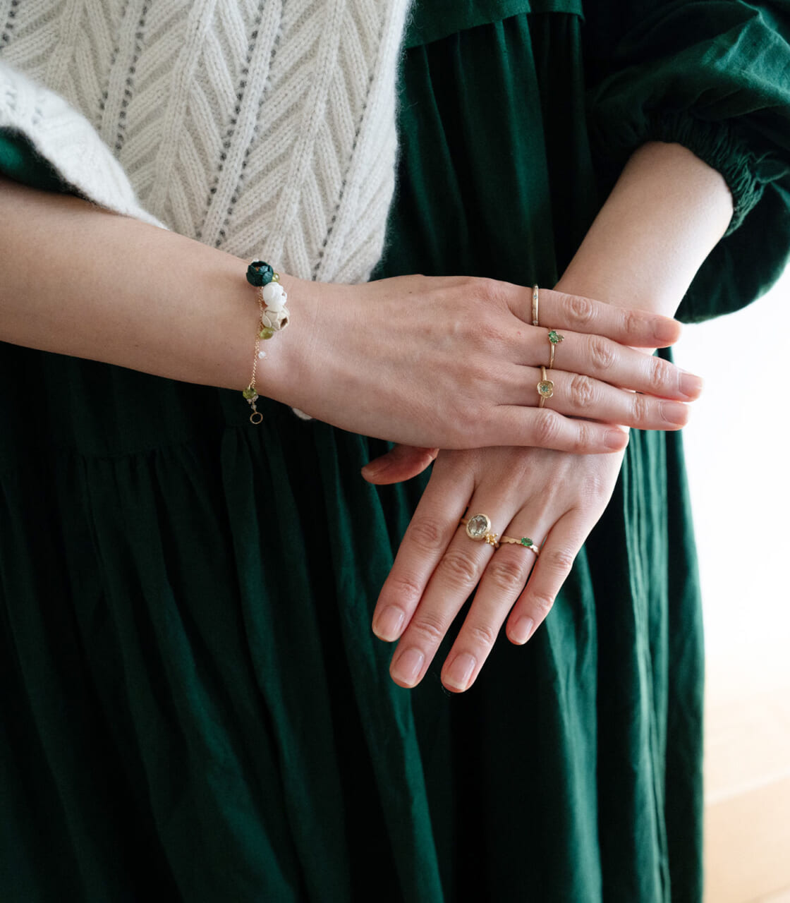 緑色のジュエリーで統一してみました。