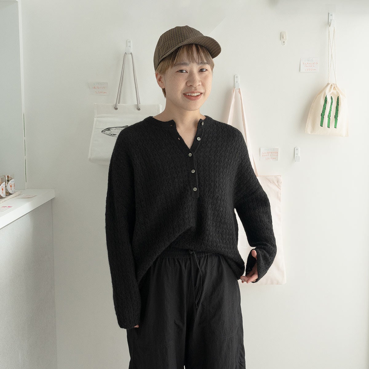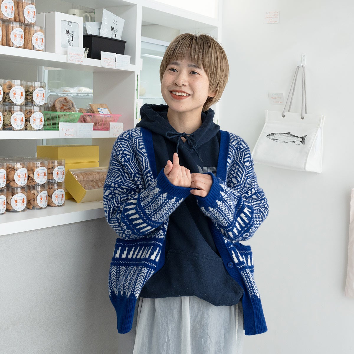 大学卒業後、古着屋につとめヴィンテージアイテムにも魅了される。いくつかの職業を経た後に、ニットデザイナーを本職とし、2009年、『編みものこもの』(文化出版局)を出版。以降、書籍や雑誌等で作品発表を続ける。