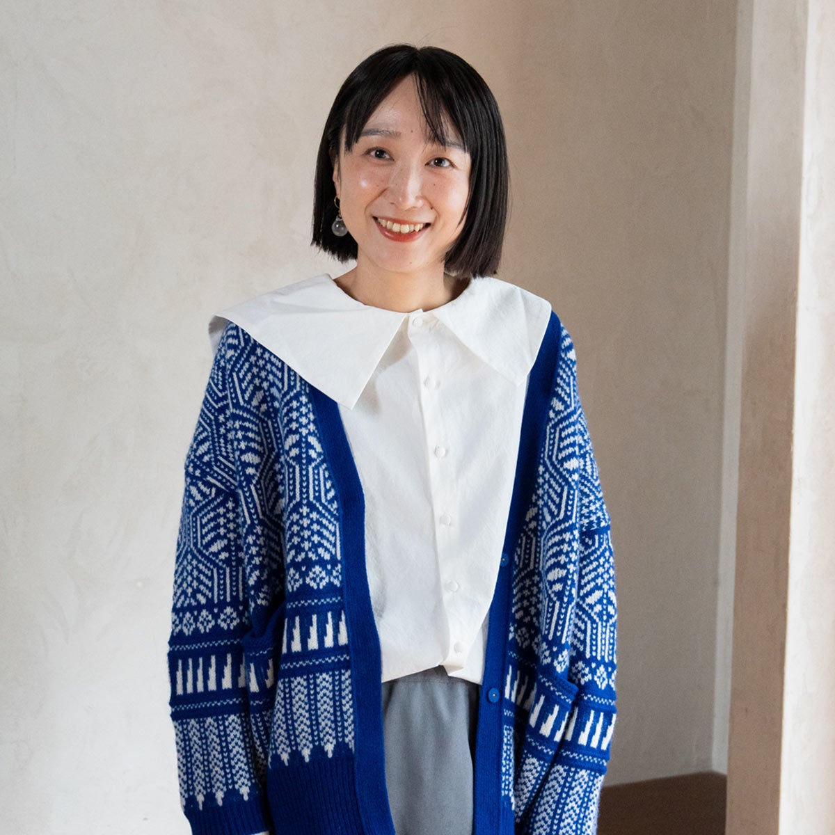大学卒業後、古着屋につとめヴィンテージアイテムにも魅了される。いくつかの職業を経た後に、ニットデザイナーを本職とし、2009年、『編みものこもの』(文化出版局)を出版。以降、書籍や雑誌等で作品発表を続ける。