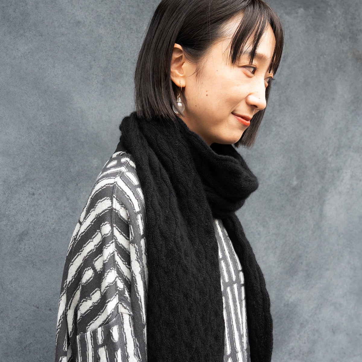 葉っぱのモチーフとデザインが目を引くマフラー。