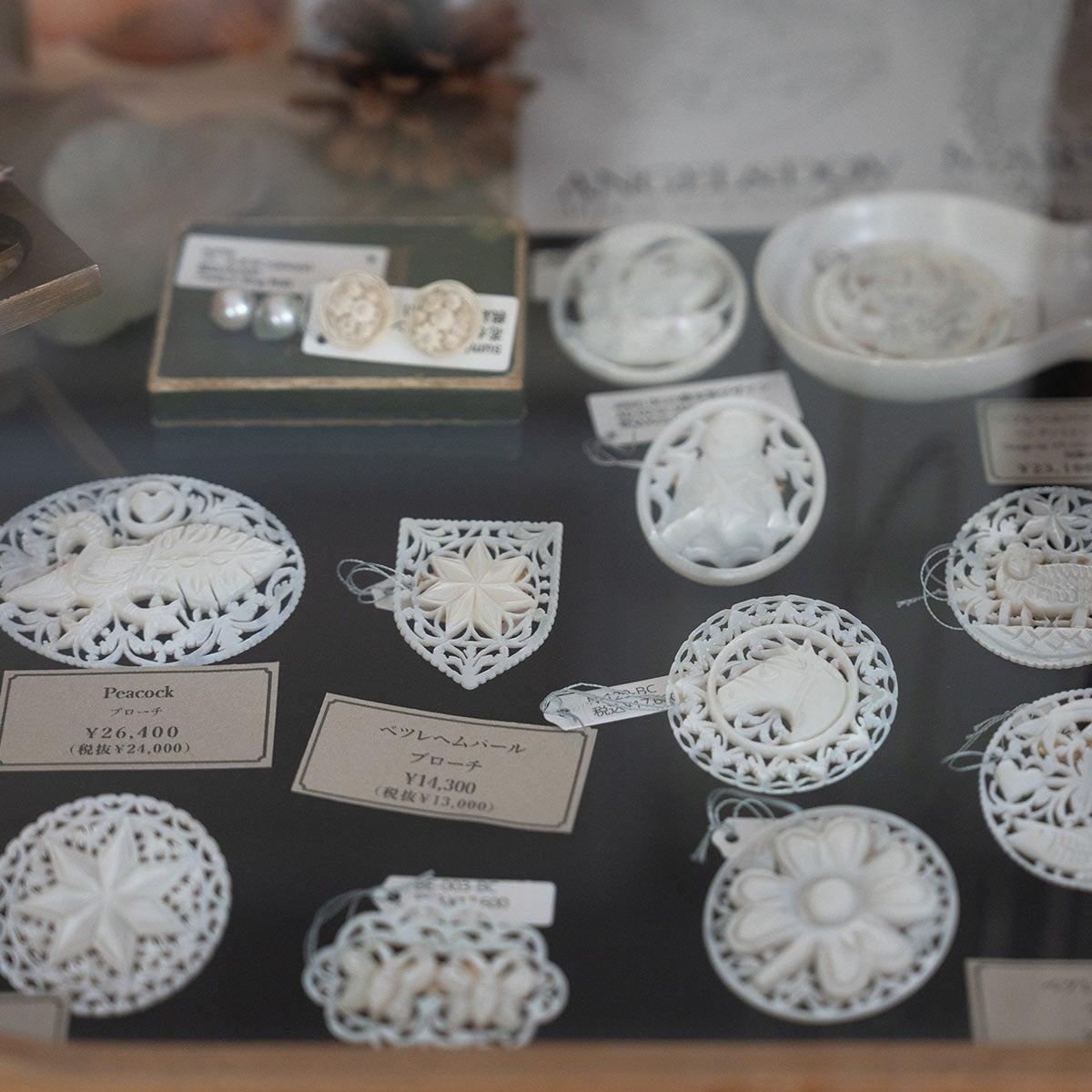 ベツレヘムパールがならべられています。 - 「熟練職人のブロス・コムシィーエさんとも