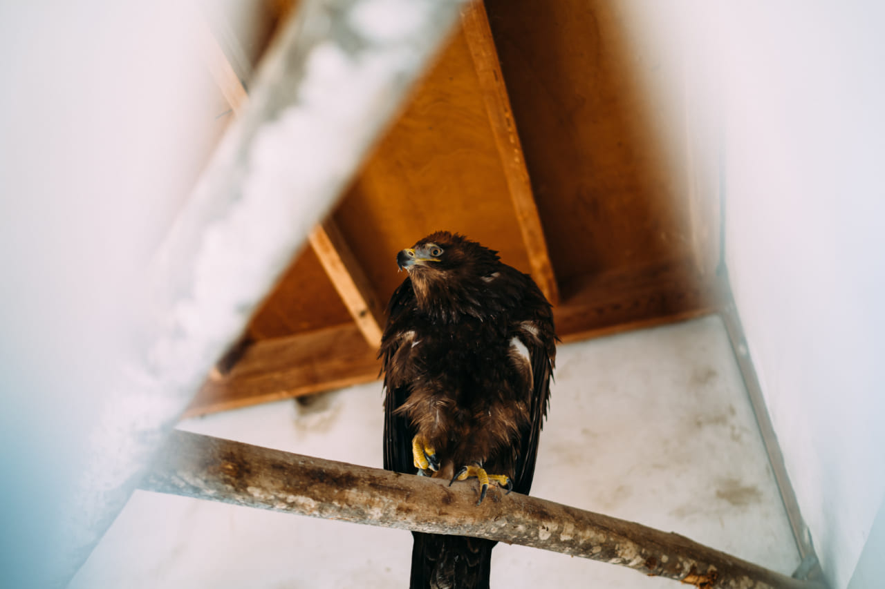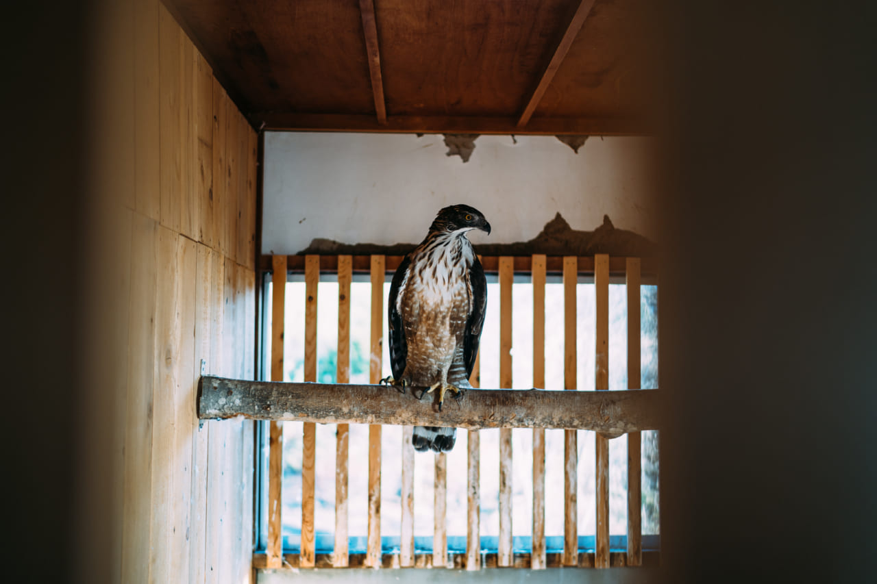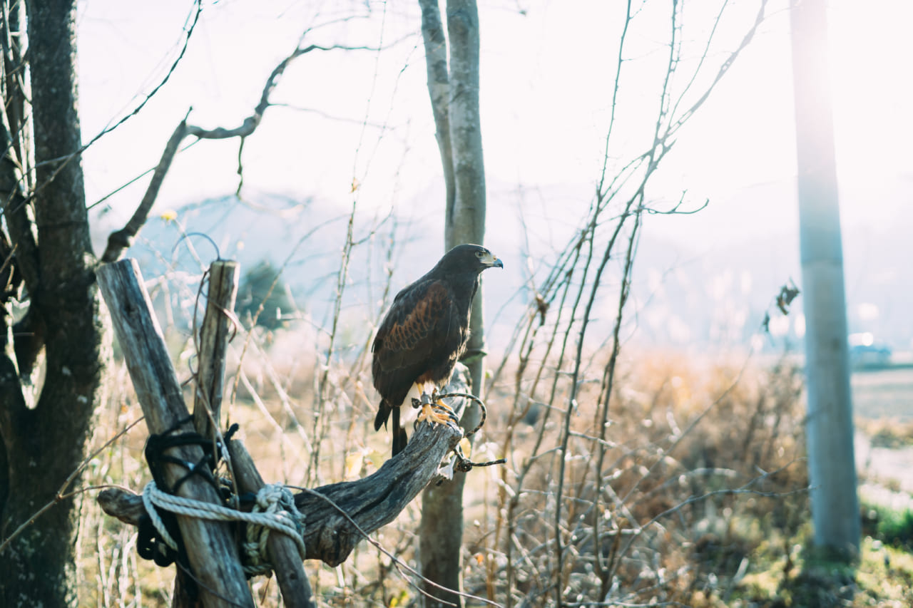 大型の猛禽類「クマタカ」で狩りをする