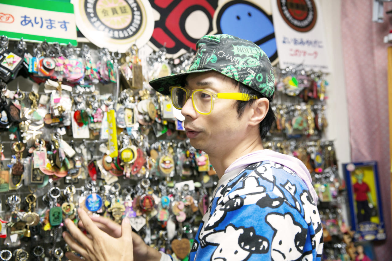 - (裏ボタンやキーホルダーを見かけて)