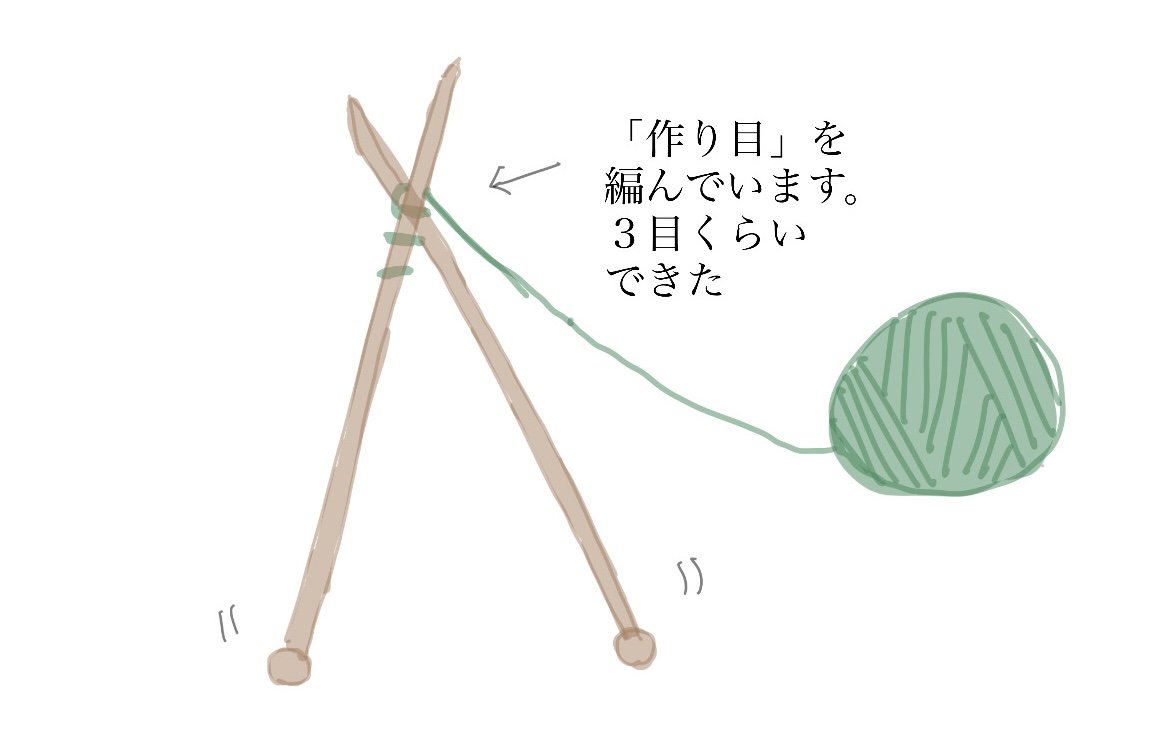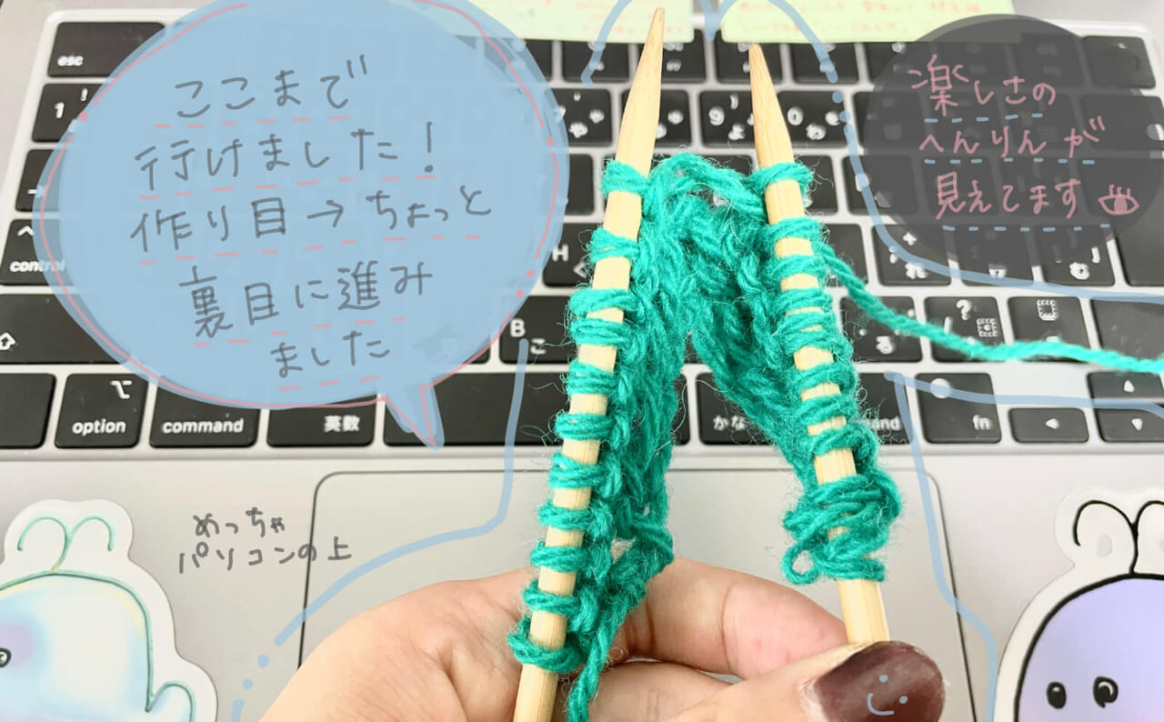 5目めぐらいで右の編み棒から糸が抜けちゃって、