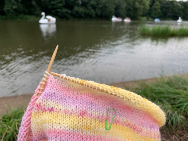 好きな景色を目の前にして、空の下で編むのはたのしいですよね。