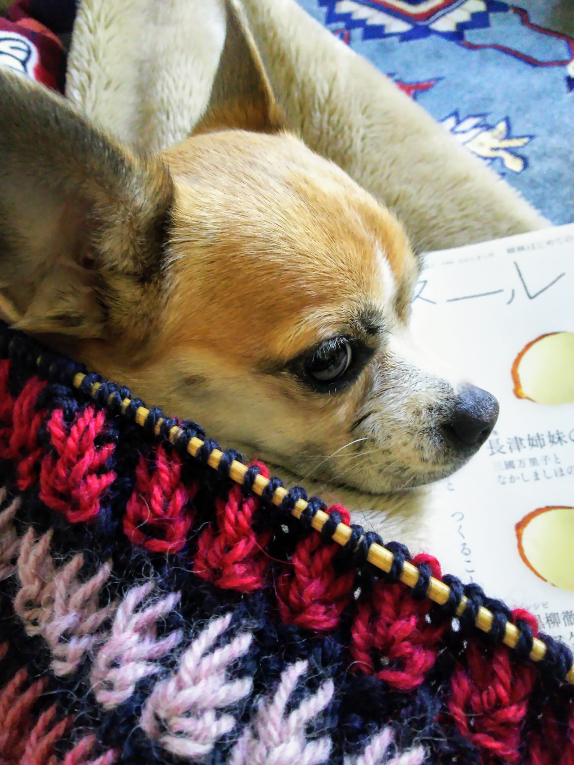 愛犬とともに編む時間は、暖かそうですね。