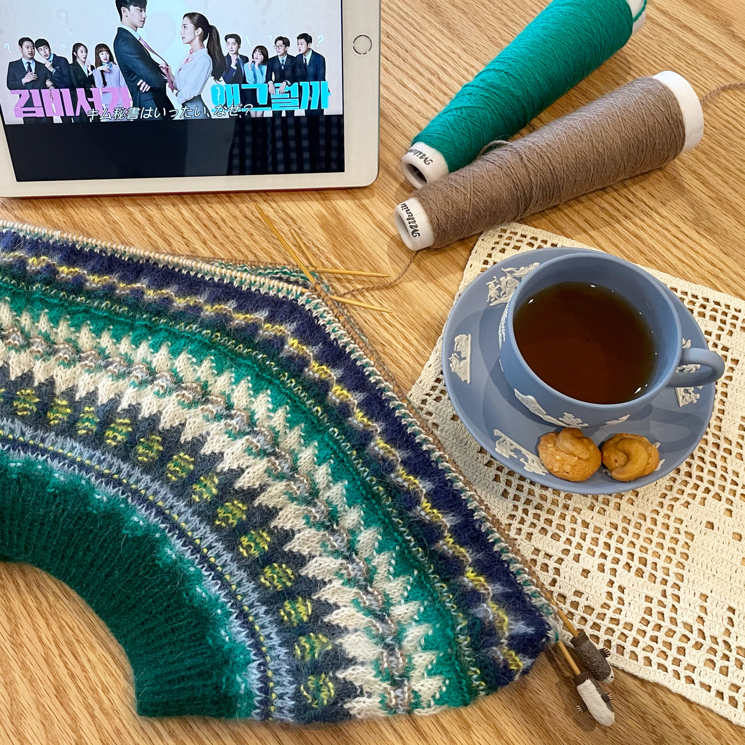 完成した作品のコーディネート、お供のお菓子やお茶など