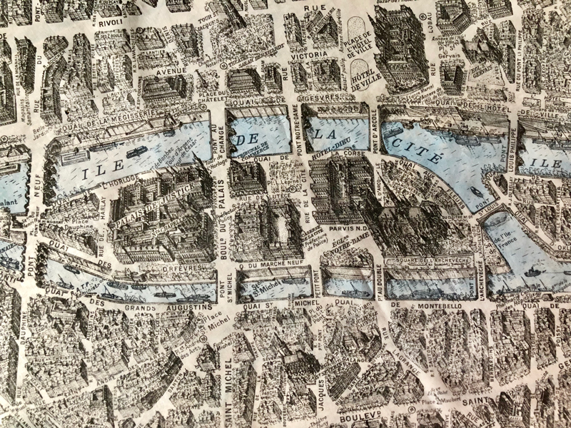 - 真ん中を横切る青い太い線は、セーヌ川です。