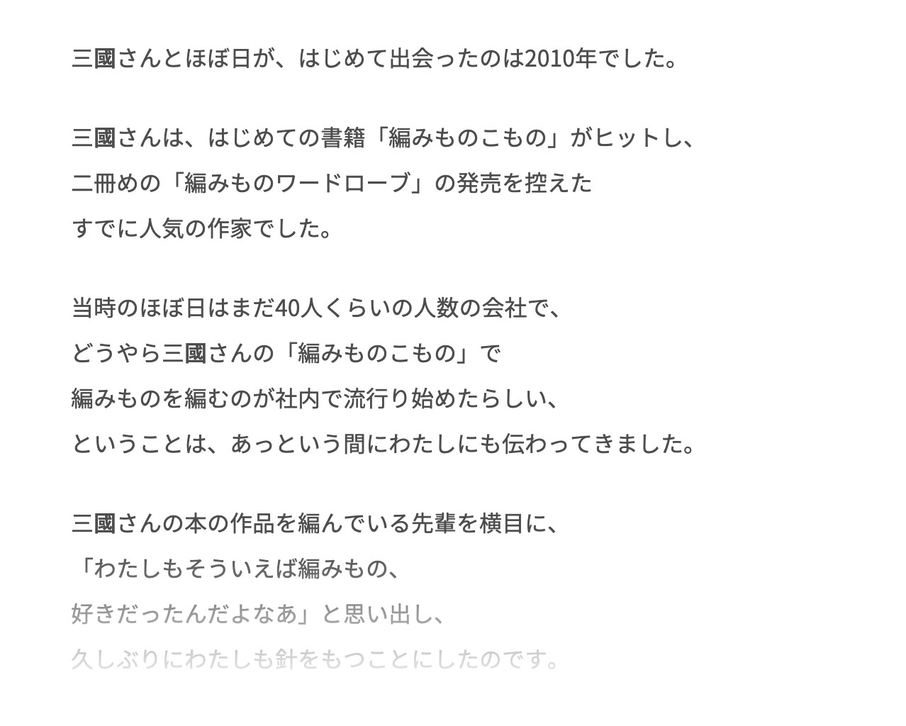 ほぼ日の編み物担当のみっちゃんに向けて、