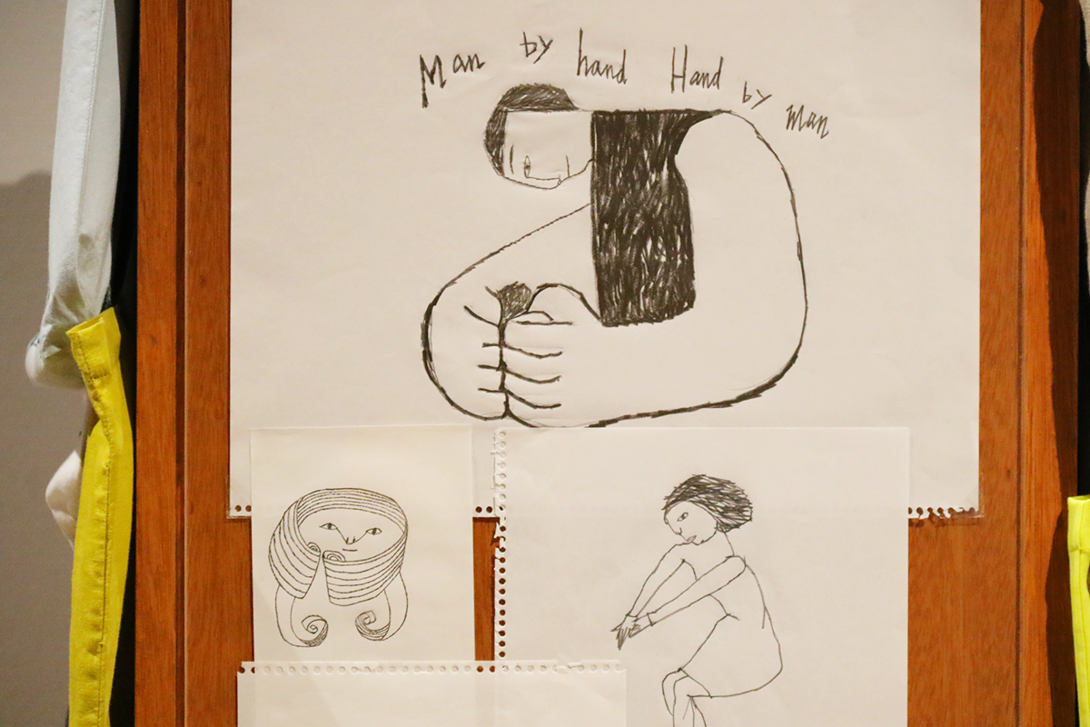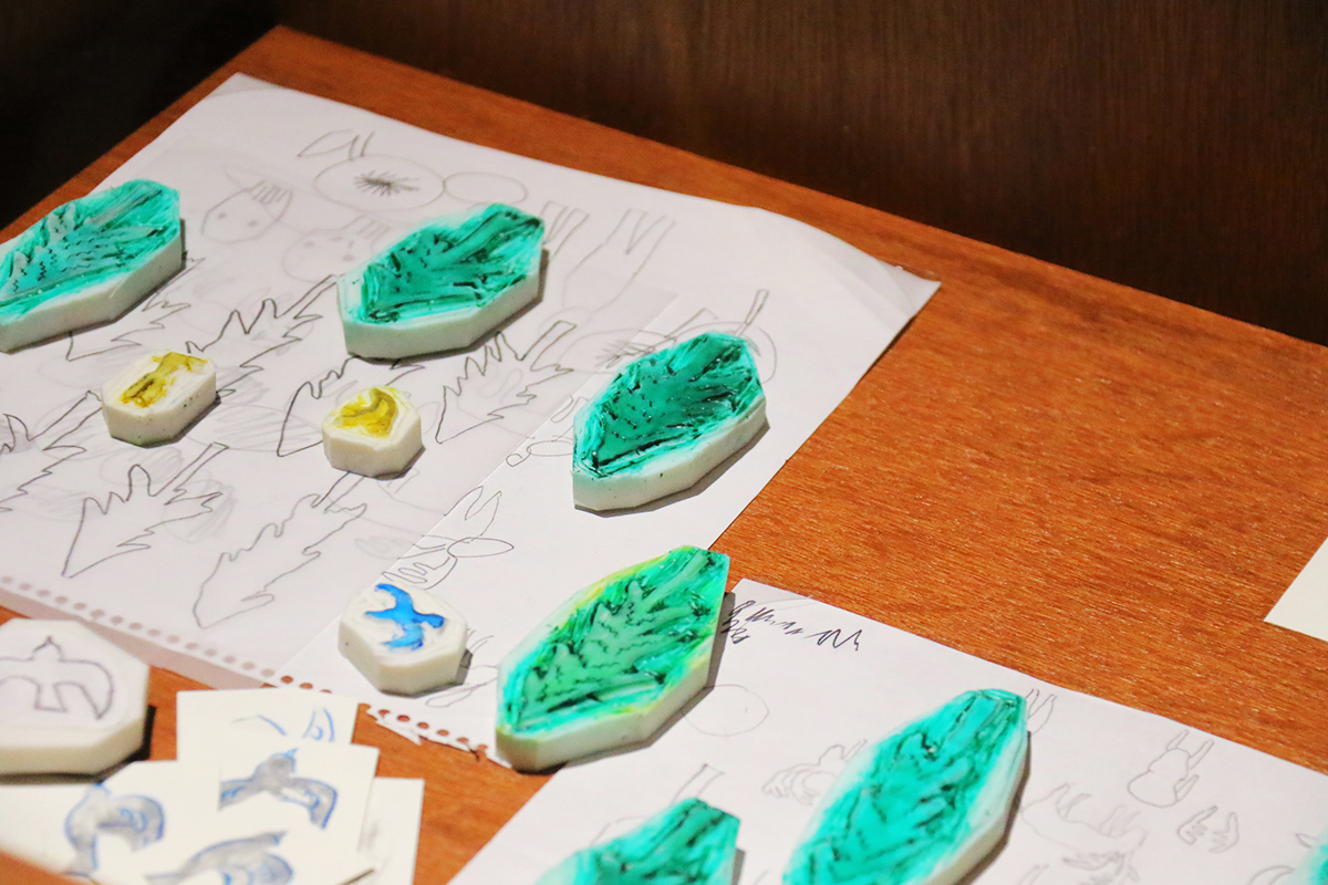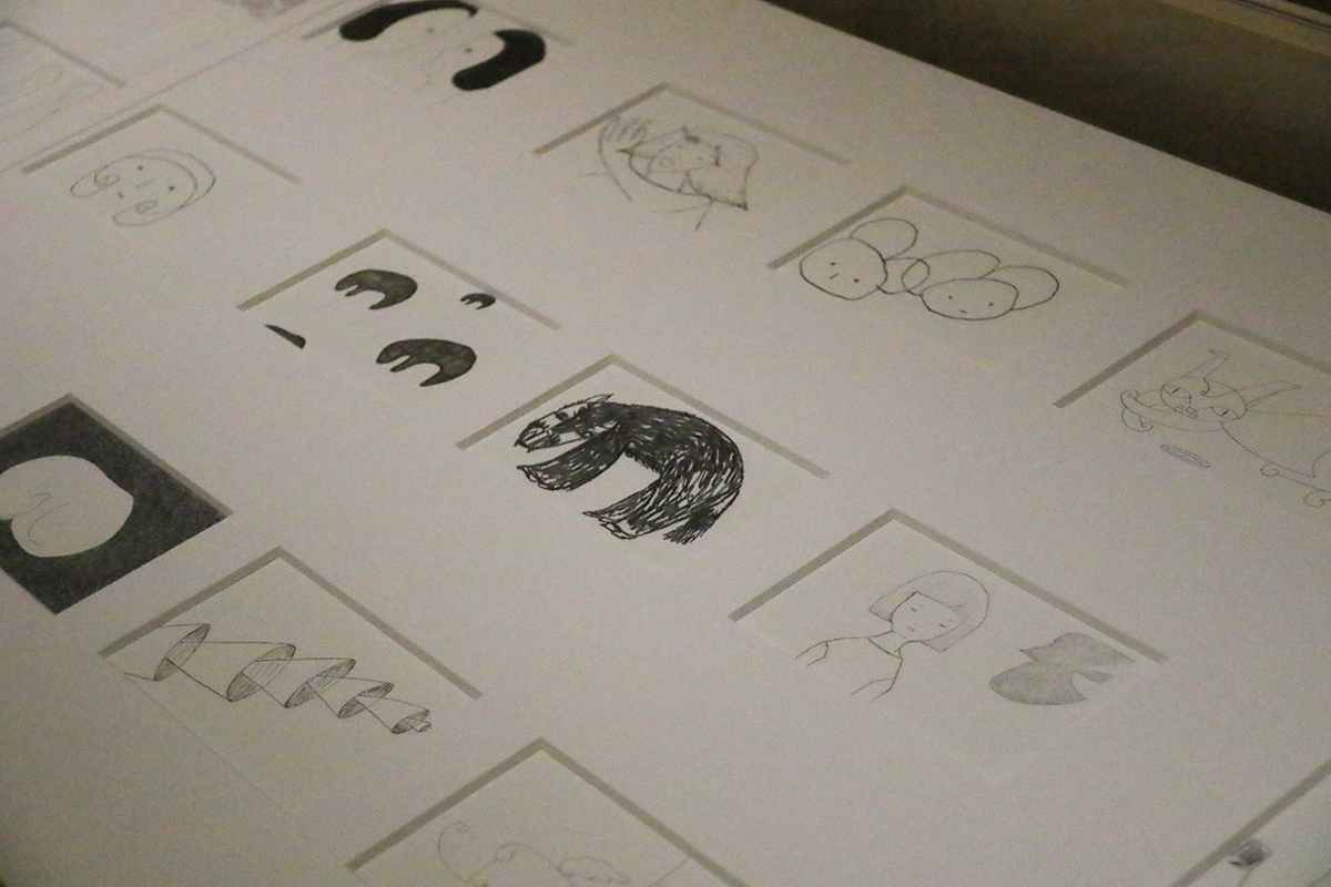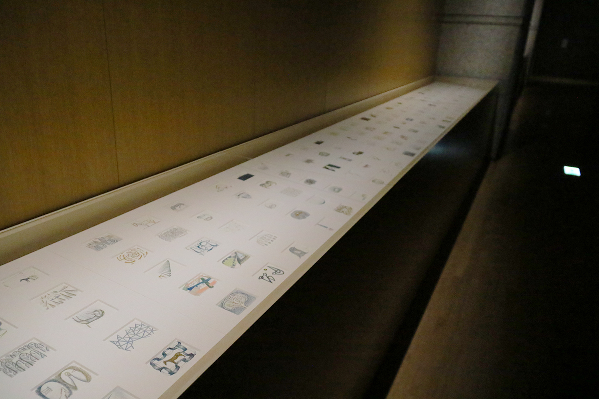 デザインの原画、映像、印刷物や皆川さんの挿画など、