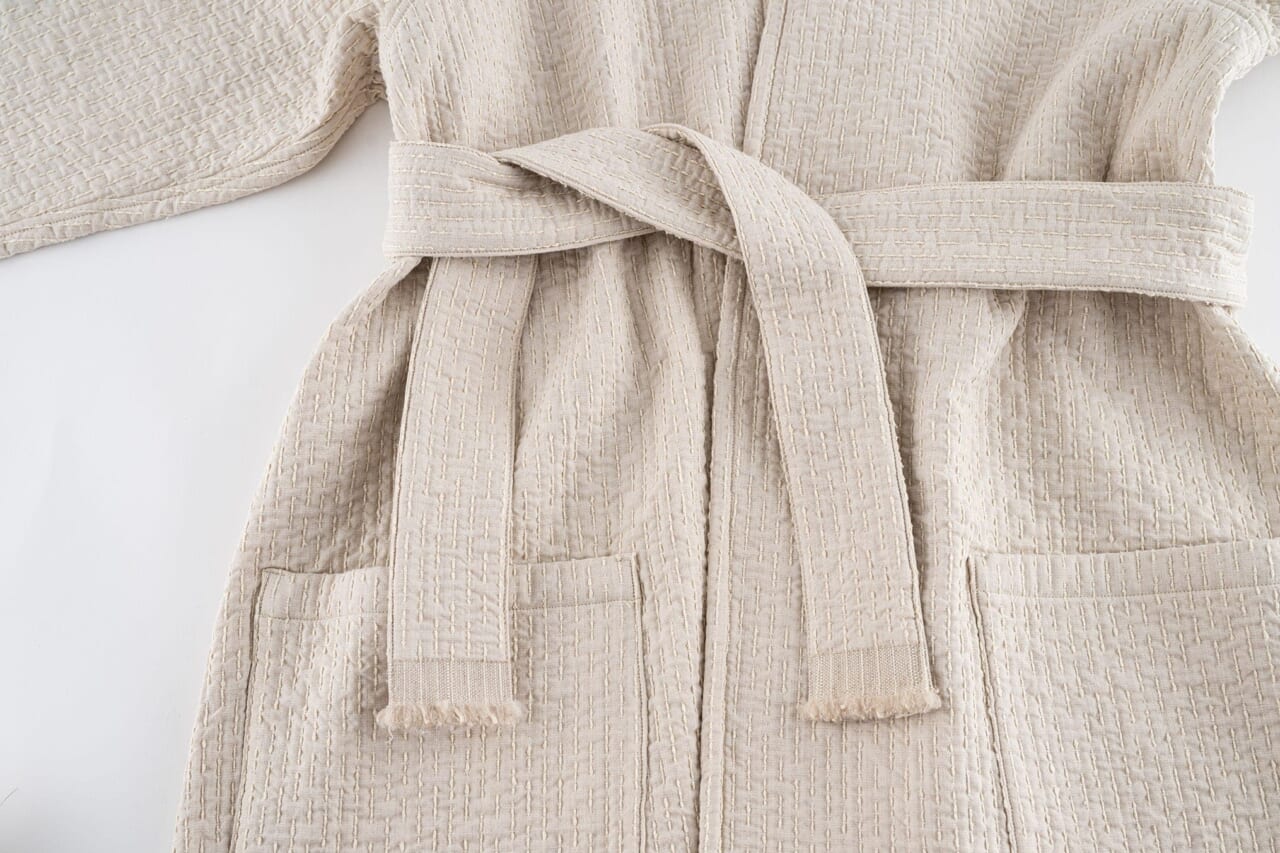 裏面のシルクの絹紡紬糸(けんぼうちゅうし/おちわた)は